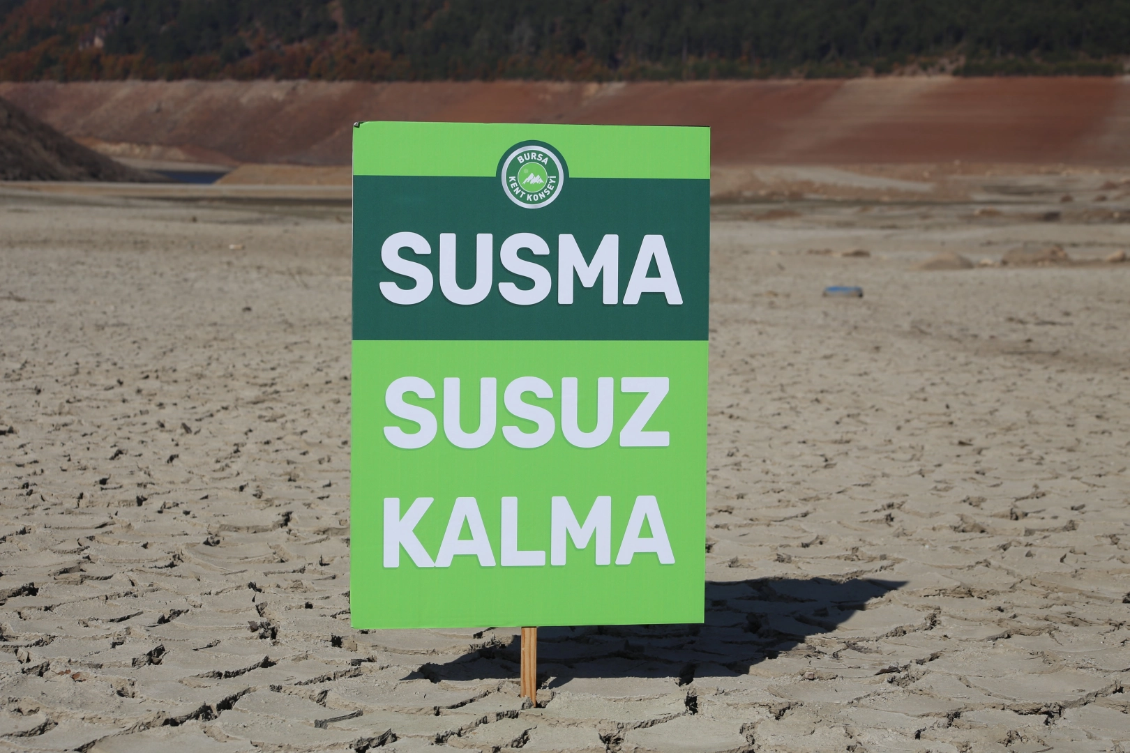 Bursa Kent Konseyi kuruyan Nilüfer Barajında basın açıklaması gerçekleştirdi. Kuruma tehlikesiyle karşı karşıya kalan Nilüfer Barajı'nda su seviyesi yüzde 2 olarak ölçüldü.