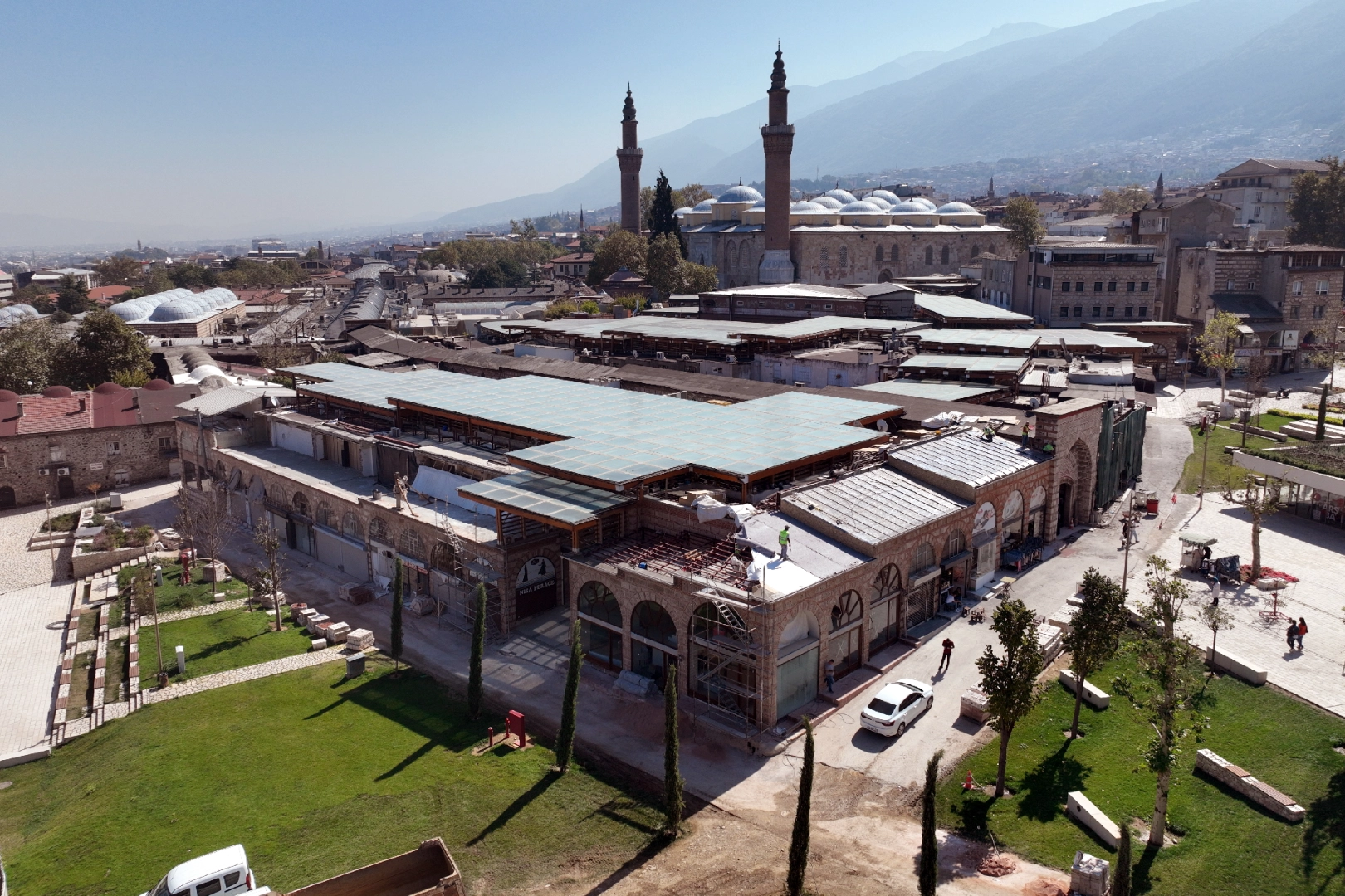 Bursa Büyükşehir Belediyesi’nin Çevre Şehircilik ve İklim Değişikliği Bakanlığı destekleriyle hayata geçirdiği Tarihi Çarşı ve Hanlar Bölgesi Çarşıbaşı Kentsel Dönüşüm Projesi kapsamında, tarihi bölgeyi kuşatan 38 bina yıkılmış, etrafı dükkanlarla sarılı 342 yıllık Esiri Mehmet Dede Türbesi ile geçmişi 1549’a kadar uzanan Sağrıcı Sungur Mescidi gün yüzüne çıkarılmıştı. Tamamlanan Bakırcılar Meydanı, İpekhan Meydanı, Sağrıcı Sungur Mescidi ve peyzaj düzenlemeleri halkın hizmetine açılıp, otoparkla ilgili imalatlar devam ederken, Büyükşehir Belediyesi daha görünür hale gelen tarihi hanlarda başlattığı restorasyon çalışmalarına hız verdi.