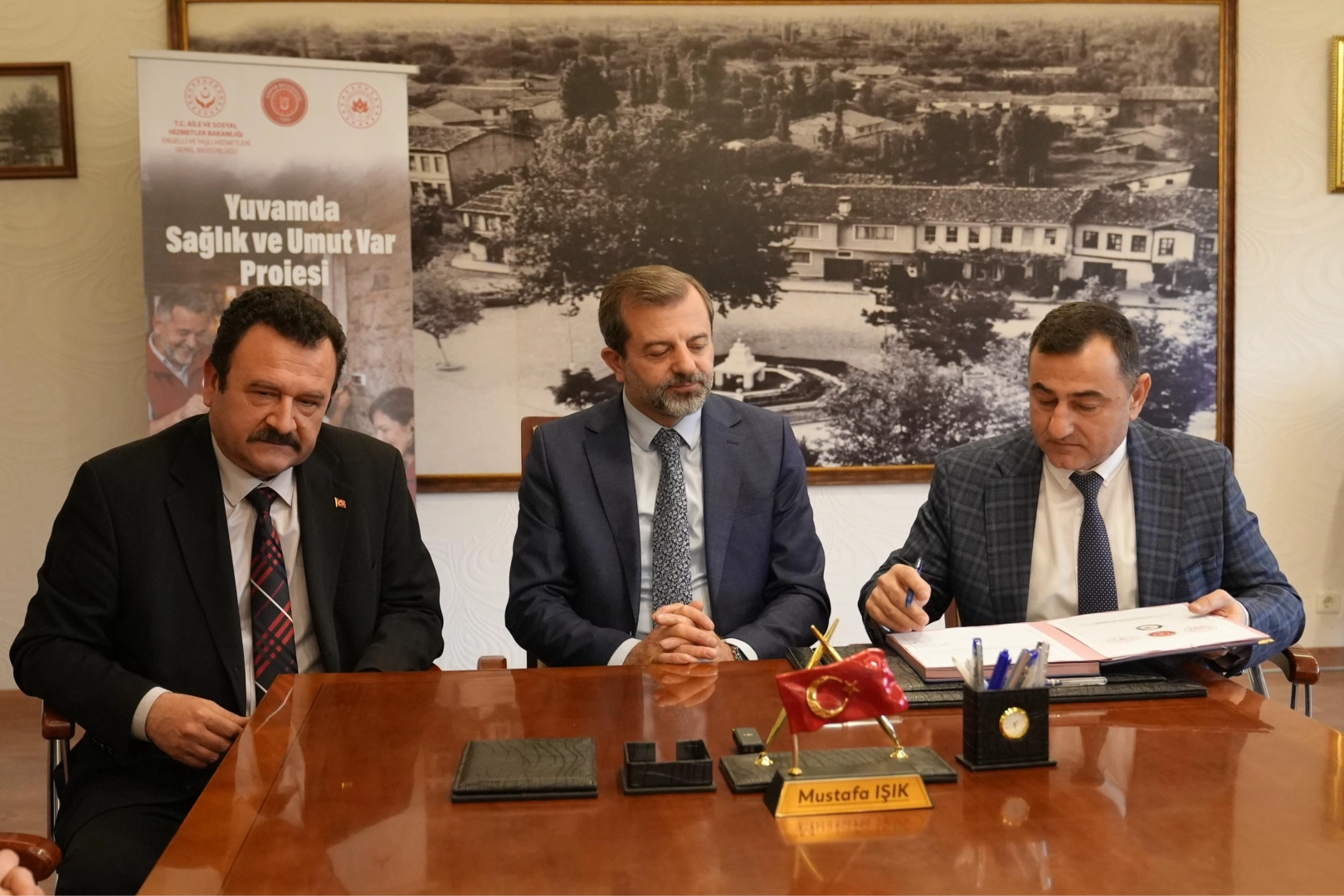 Gürsu Sosyal Hizmet Merkezi Mustafa Ünalan ve Gürsu Sağlık İlçe Müdürü Hüseyin Kaplan ile proje için protokol imzalayan Gürsu Belediye Başkanı Mustafa Işık “ Projeyi tüm ilçe belediyeleri arasında onaylatan tek belediye olduk. Çünkü altında iyi bir ekip çalışması yatıyor. Arge kısmında detaylıca çalıştık ve sonuçta ilçemizdeki yaşlılara ait bir veri tabanı oluşturduk. Şimdi ilgili kurumlarımızla beraber büyüklerimize daha yakın olacağız ve onların her an yanında olacağız” dedi.