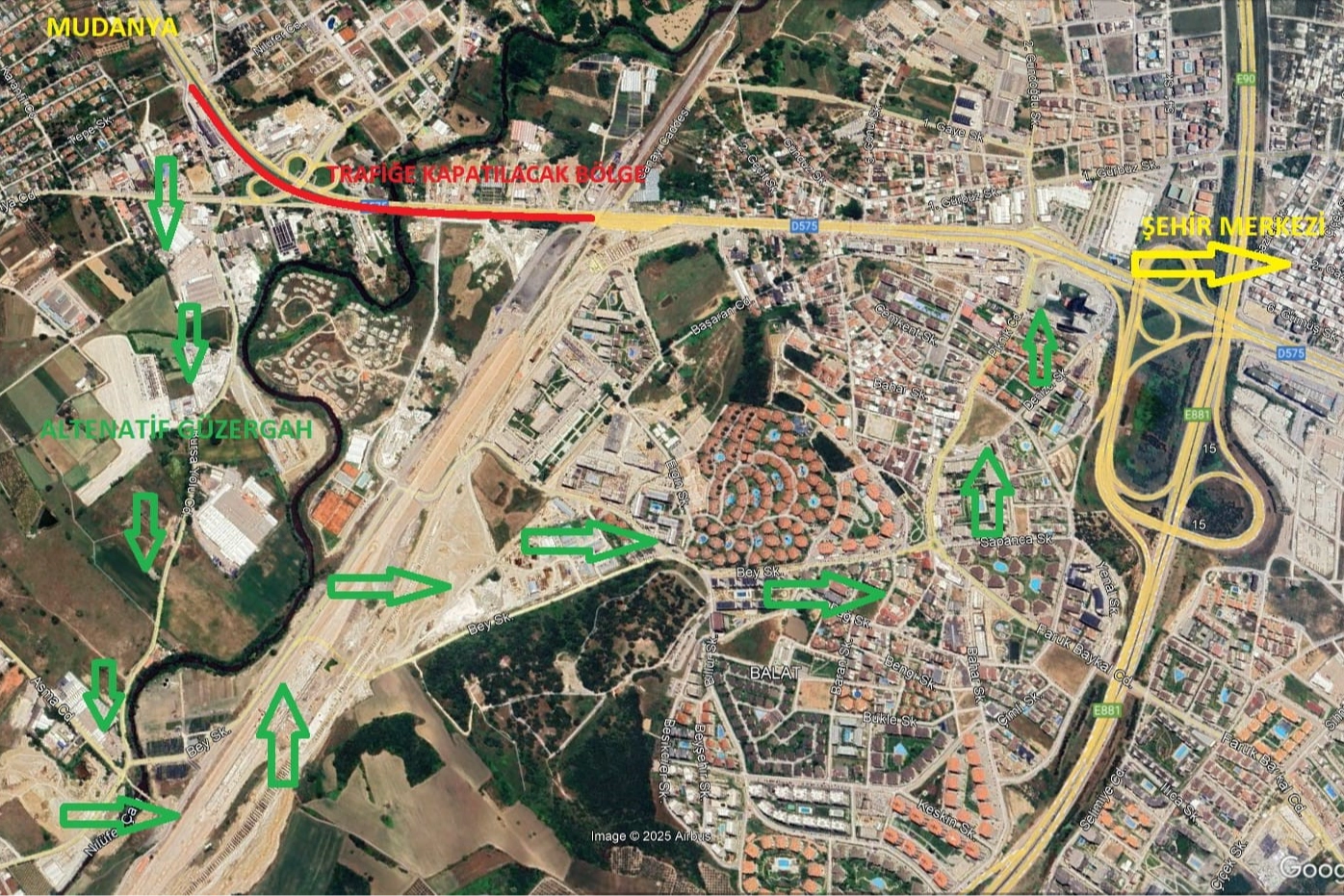 Bursa’da Nilüfer, Osmangazi ve Mudanya ilçelerini birbirine bağlayarak bölgedeki trafik yoğunluğunu önemli ölçüde azaltması hedeflenen Geçit Köprüsü Projesi'nde çalışmalar hız kesmeden devam ediyor. Bu kapsamda, Mudanya Sanayi Yolu Caddesi üzerinde, Nilüferköy ile Geçit mahalleleri arasındaki güzergahta inşa edilen Geçit Köprüsü'nde 20 adet öngerme kirişinin montajı gerçekleştirilecek. Bursa Büyükşehir Belediyesi'nden şu açıklama yapıldı: "Montaj çalışmalarına 05 Ocak 2026 Pazartesi gecesi başlanacak olup, çalışmaların 5 gece sürmesi planlanmaktadır. Çalışmalar süresince, 00.00 - 06.00 saatleri arasında Mudanya-şehir merkezi istikametindeki yol trafiğe kapatılacaktır. Üç ilçeyi birbirine bağlayarak bölgedeki ulaşımı daha güvenli ve akıcı hale getirecek olan proje tamamlandığında, bölgedeki trafik yükünün önemli ölçüde azalması hedeflenmektedir. Sürücülerin, belirtilen saatlerde alternatif güzergâhları kullanmaları önemle rica olunur"