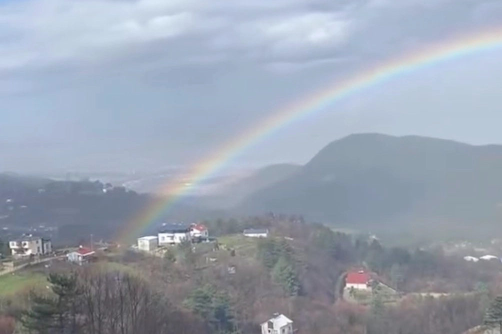 - Bursa'nın Kestel ilçesine bağlı Saitabat Mahallesi'nde yağmurun ardından oluşan gökkuşağı, görenleri hayran bıraktı. Bursa genelinde etkili olan yağışlı havanın ardından Saitabat'ta bulutların arasından yüzünü gösteren güneşle birlikte gökyüzünde beliren gökkuşağı, doğayla iç içe manzarasıyla kartpostallık görüntüler oluşturdu. Yağmur sonrası temizlenen hava ve yeşilin her tonunu barındıran Saitabat vadisi üzerinde oluşan gökkuşağı, vatandaşlara keyifli anlar yaşattı. O anlara tanıklık eden vatandaşlar, gökkuşağını cep telefonlarıyla görüntülerken, kısa süre etkili olan doğa olayı çevrede görsel bir şölen sundu. Gökyüzünde beliren gökkuşağı, bir süre sonra yavaş yavaş kayboldu. Yağmurun ardından ortaya çıkan bu manzara, Bursa'nın Kestel ilçesindeki Saitabat'ta baharın güzelliğini bir kez daha gözler önüne serdi.