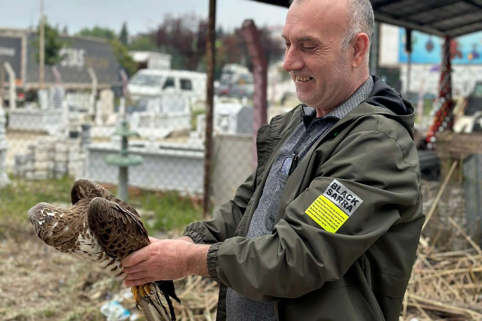 Çarpmanın yere düşen şahini gören işyerinde çalışan Hasan Hakansu, yardıma koştu.