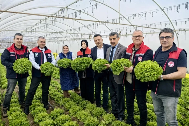 Bursa’da da Kestel ve Orhangazi ilçelerinde toplam 16 dekarlık alanda uygulanan proje kapsamında biyolojik ve biyoteknik mücadele ile üretim yapan üretici Özlem Tetet'e ait serada yetiştirilen marulların hasat etkinliği yapıldı.