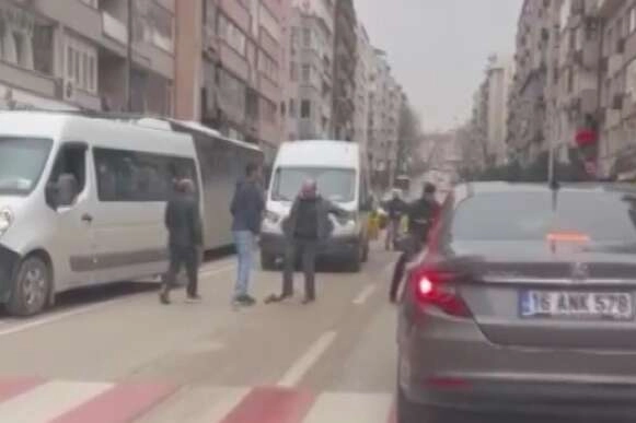 Olay, merkez Osmangazi ilçesi Altıparmak Caddesi üzerinde meydana geldi. Edinilen bilgiye göre, servis ile otobüs şoförü arasından yol verme meselesi nedeniyle tartışma çıktı.