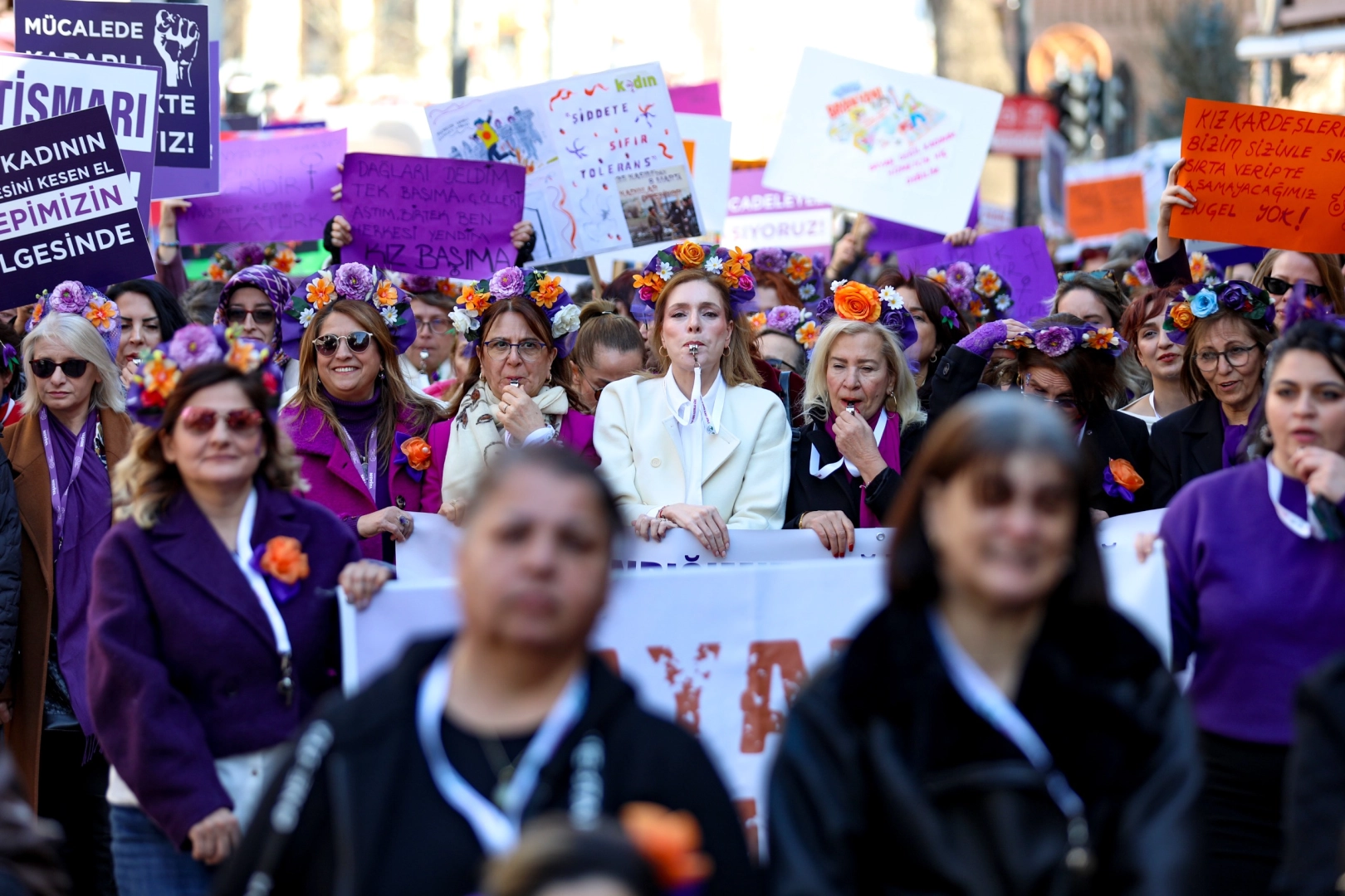 Bursa Büyükşehir Belediyesi ve Bursa Kent Konseyi tarafından 8 Mart Dünya Kadınlar Günü kapsamında düzenlenen yürüyüşte, yüzlerce kadın eşitlik, özgürlük ve dayanışma çağrısında bulundu. Cumhuriyet Caddesi’nden Hanlar Bölgesi’ne kadar yürüyen Bursalı kadınlar, 8 Mart Dünya Kadınlar Günü etkinlikleri kapsamında ‘Saklandığımız değil, Buluştuğumuz yerdeyiz. Biz birbirimizin çaresiyiz’ mesajını verdi. Ellerinde ‘İstismarı aklama! Asla yalnız yürümeyeceksin!’ yazılı döviz, afiş ve pankartlar taşıyan kadınlar, ‘Yaşasın kadın dayanışması’ sloganları atarak görünmez kılınmalarına, emeklerinin değersizleştirilmesine, şiddete ve ayrımcılığa karşı dayanışma mesajı verildi. Etkinliğe katılanlara rozet ve toka dağıtılırken, kadınlar saçlarına taktıkları çiçeklerle caddeyi adeta renk cümbüşüne çevirdi.