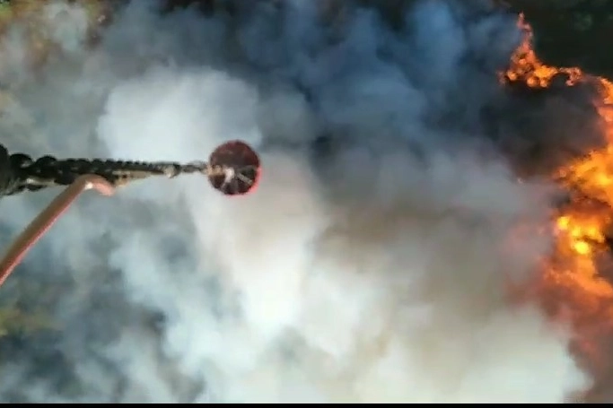 Ormana ait yangın söndürme helikopterlerinin havadan müdahalesi yangının söndürülmesinde önemli rol oynadı. O anlar da helikopter kamerasına yansıdı.