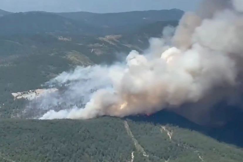 Orhaneli ilçesi Topuk Mahallesi mevkiinde bulunan ormanlık alanda başlayan ve kısa süre içerisinde büyüyen yangın, Orman Bölge Müdürlüğü’ne ait uçak ile havadan görüntülendi.