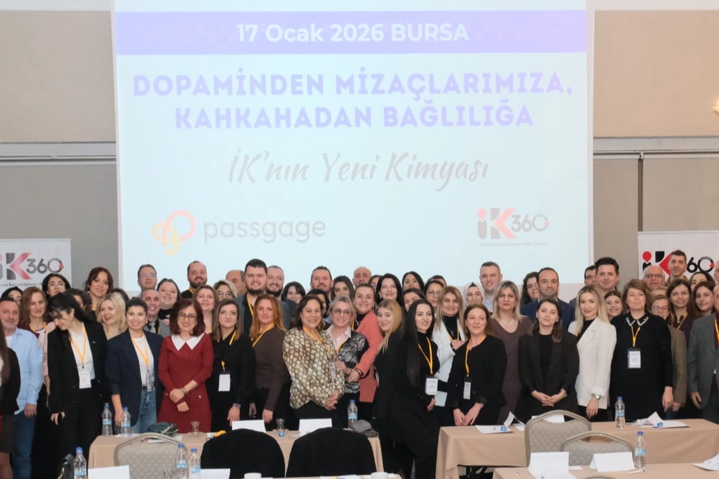 İK 360 Platformu, 17 Ocak 2026 tarihinde gerçekleştirdiği geniş katılımlı organizasyonla yeni yıla güçlü bir merhaba dedi. Passgage ve İK 360 Platformu iş birliğiyle Podyum Davet’te düzenlenen “Dopaminden Mizaçlarımıza, Kahkahadan Bağlılığa: İK’nın Yeni Kimyası” etkinliği, Bursa’nın dev firmalarını ve insan kaynakları profesyonellerini bir araya getirdi.