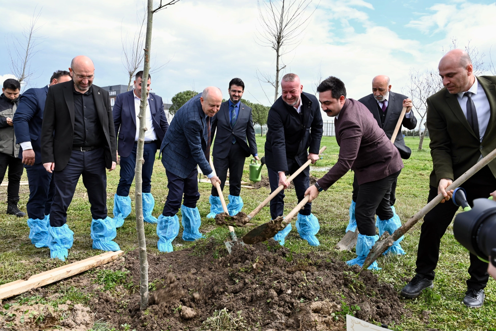 Etkinlikler, Karacabey’in muhtelif noktalarında gerçekleştirilen fidan dikimleriyle devam ederken, son olarak Karacapark’ta düzenlenen törene ilçe protokolü yoğun katılım gösterdi. Karacabey Kaymakamı Cemalettin Yılmaz, Belediye Başkanı Fatih Karabatı, Cumhuriyet Başsavcısı Batuhan Kılınç, Belediye Başkan Yardımcısı İlyas Aksoy, İlçe Milli Eğitim Müdürü Muhammet Ali Erbir, İlçe Müftüsü Abdullah Karaca ve Karacabey Orman İşletme Müdürü Serdar Yazıcı’nın katıldığı etkinlikte, dualar eşliğinde 20 fidan toprakla buluşturuldu.