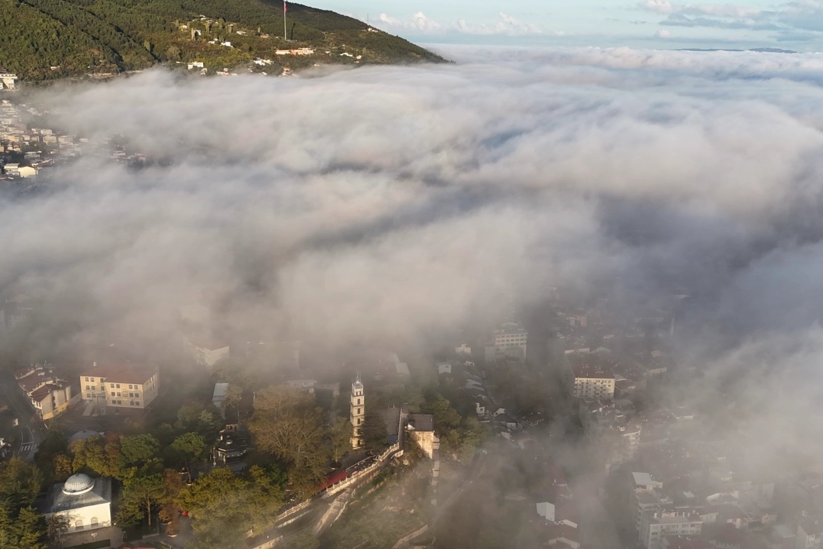 Bursa'da etkili olan yoğun sis, kartpostallık görüntüler ortaya koydu. Bursa'nın tarihi mekanları, Ulu Cami, Tophane ve diğer bölgeleri sis altında seyrine doyumsuz anları ortaya koydu.