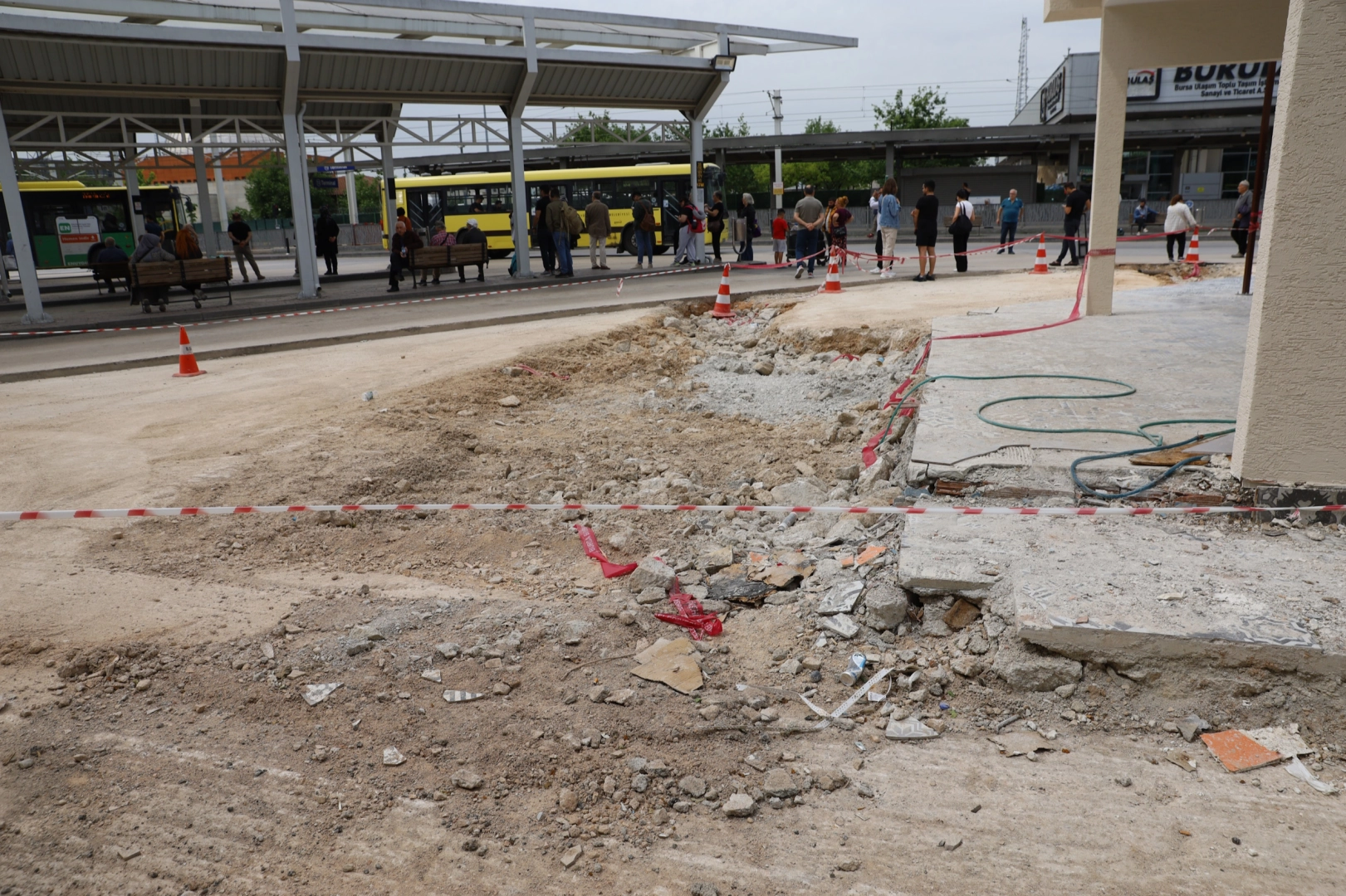 Bursa’da altyapıdan üstyapıya, kültürden sanata kadar birçok alanda projelerini hayata geçiren Büyükşehir Belediyesi, her gün yüzlerce aracın giriş çıkış yaptığı, binlerce insanın çalıştığı ve on binlerce vatandaşın kullandığı Şehirlerarası ve Uluslararası Otobüs Terminali’nde kapsamlı altyapı çalışması başlattı. Ulaşım Dairesi Başkanlığı'nın destekleriyle yürütülen çalışmalar kapsamında, terminalin ön bölümünde yol ve kaldırım düzenlemeleri ile asfaltlama çalışmaları gerçekleştiriliyor. Bu çalışmalarla birlikte terminal sahasındaki bozuk zeminlerin yenilenmesi de tamamlanıyor.