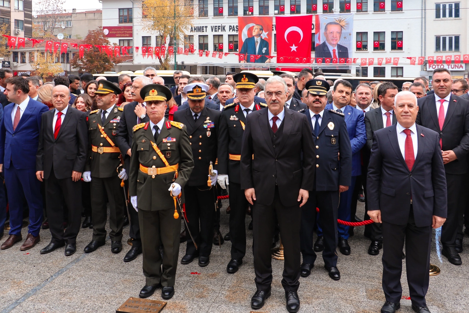 Cumhuriyetin 102. kuruluş yıl dönümünü coşku ve gururla hep birlikte yaşadığımızı belirten Bursa Valisi Erol Ayyıldız, tüm vatandaşlarımızın ve aziz milletimizin 29 Ekim Cumhuriyet Bayramı’nı kutladığını söyledi. Tarihi şan ve şerefle dolu aziz milletin, Gazi Mustafa Kemal Atatürk’ün önderliğinde başlattığı ve büyük fedakârlıklarla kazandığı eşsiz zaferin neticesinde kurulan Cumhuriyetimizin 102. kuruluş yıl dönümünün coşku ve gururunu hep birlikte yaşadığımızı belirten Bursa Valisi Erol Ayyıldız, "Cumhuriyet; tarih sahnesinden silinmek istenen bir milletin, her türlü imkânsızlığa rağmen vatan sevgisiyle, hürriyet ve istiklal aşkıyla, iman ve inanç dolu bir kararlılıkla yürüttüğü Millî Mücadele’nin sonunda kazandığı büyük bir zaferin ve yeniden dirilişin sembolüdür.