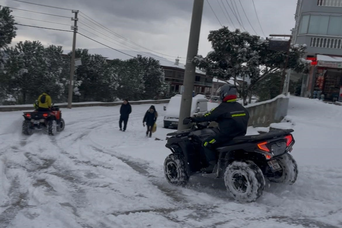 Mudanya'da bazı vatandaşlar dört tekerli motorlarıyla kar üzerinde sürüş yaparken, çocuklar sokaklara çıkarak kardan adam yaptı. Sokaklar adeta çocukların kar pistine döndü.