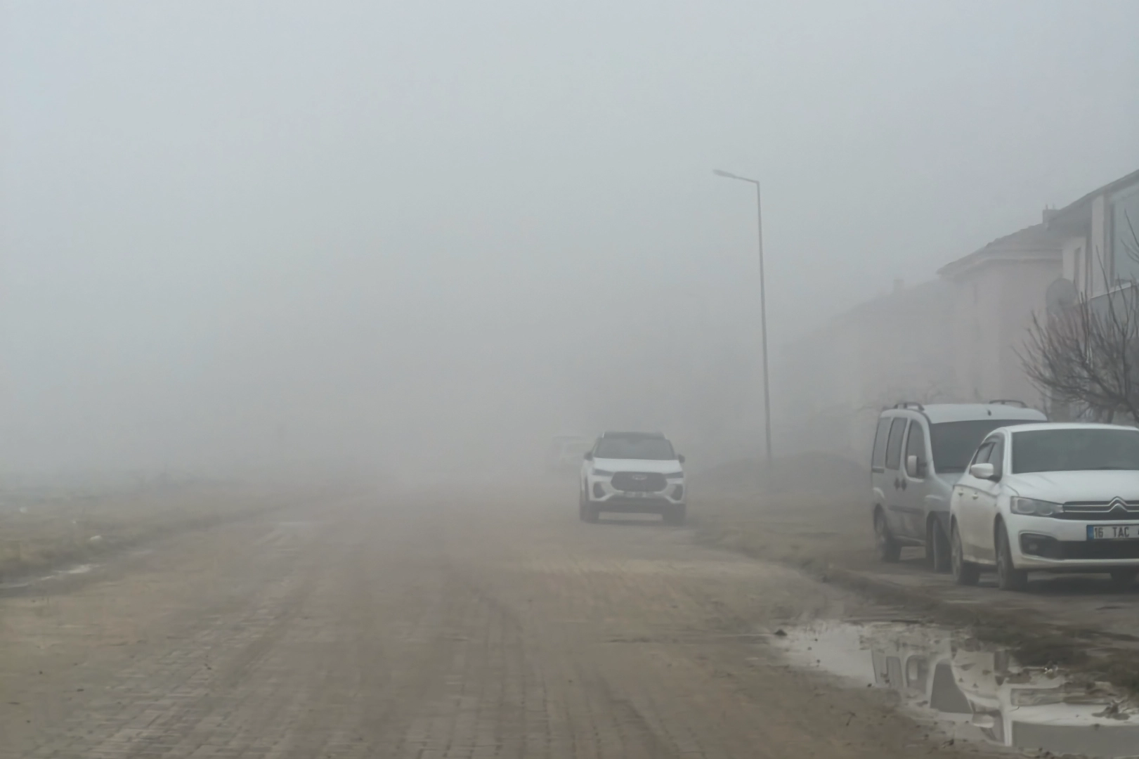 Yoğun siste ilerlemekte güçlük çeken bazı araç sürücüleri dörtlü flaşörlerini yakmak zorunda kaldı.