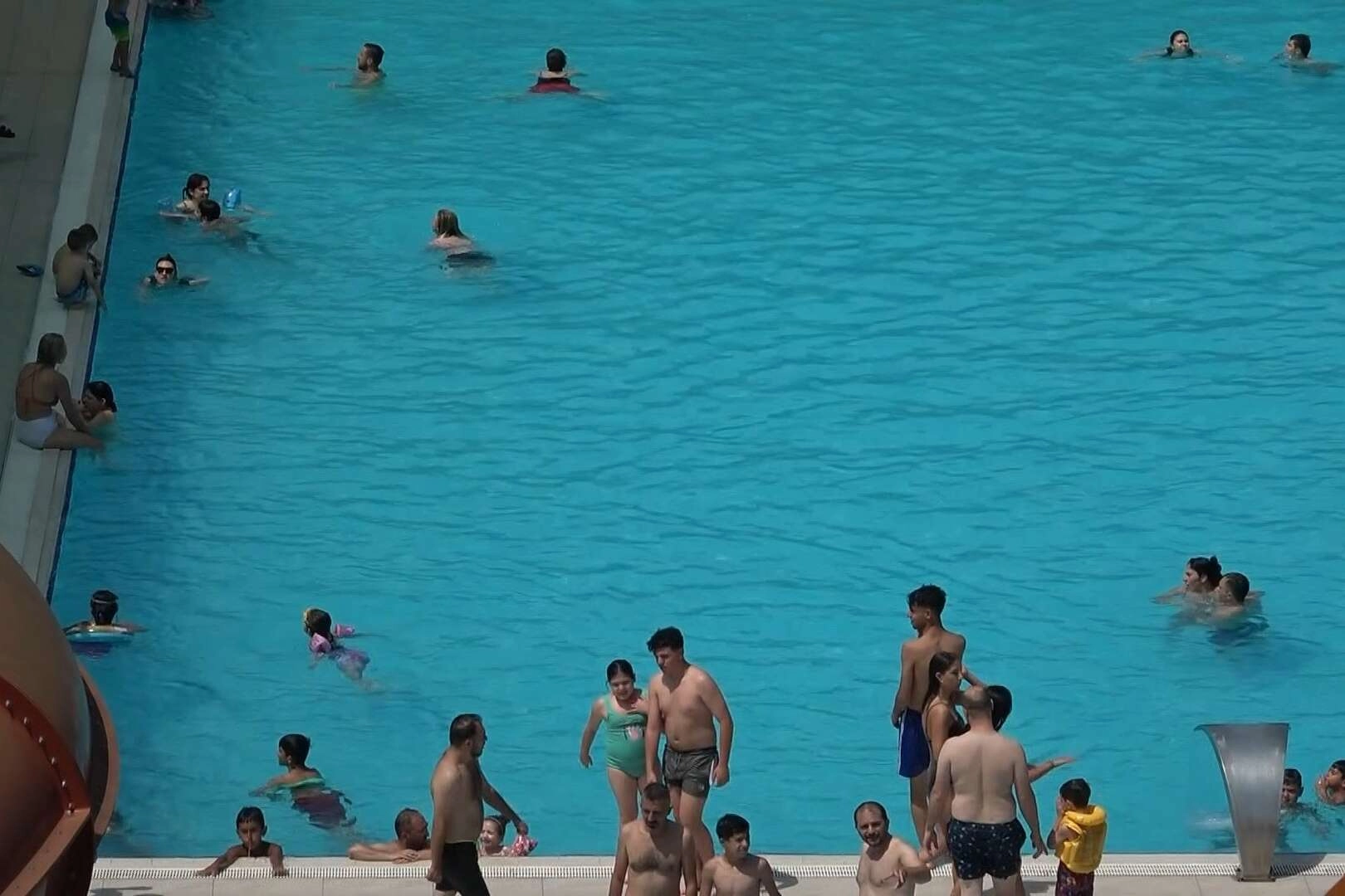 Hava sıcaklıklarının mevsim normallerinin üzerinde seyrettiği Bursa'da vatandaşlar, havuzlara akın etti.