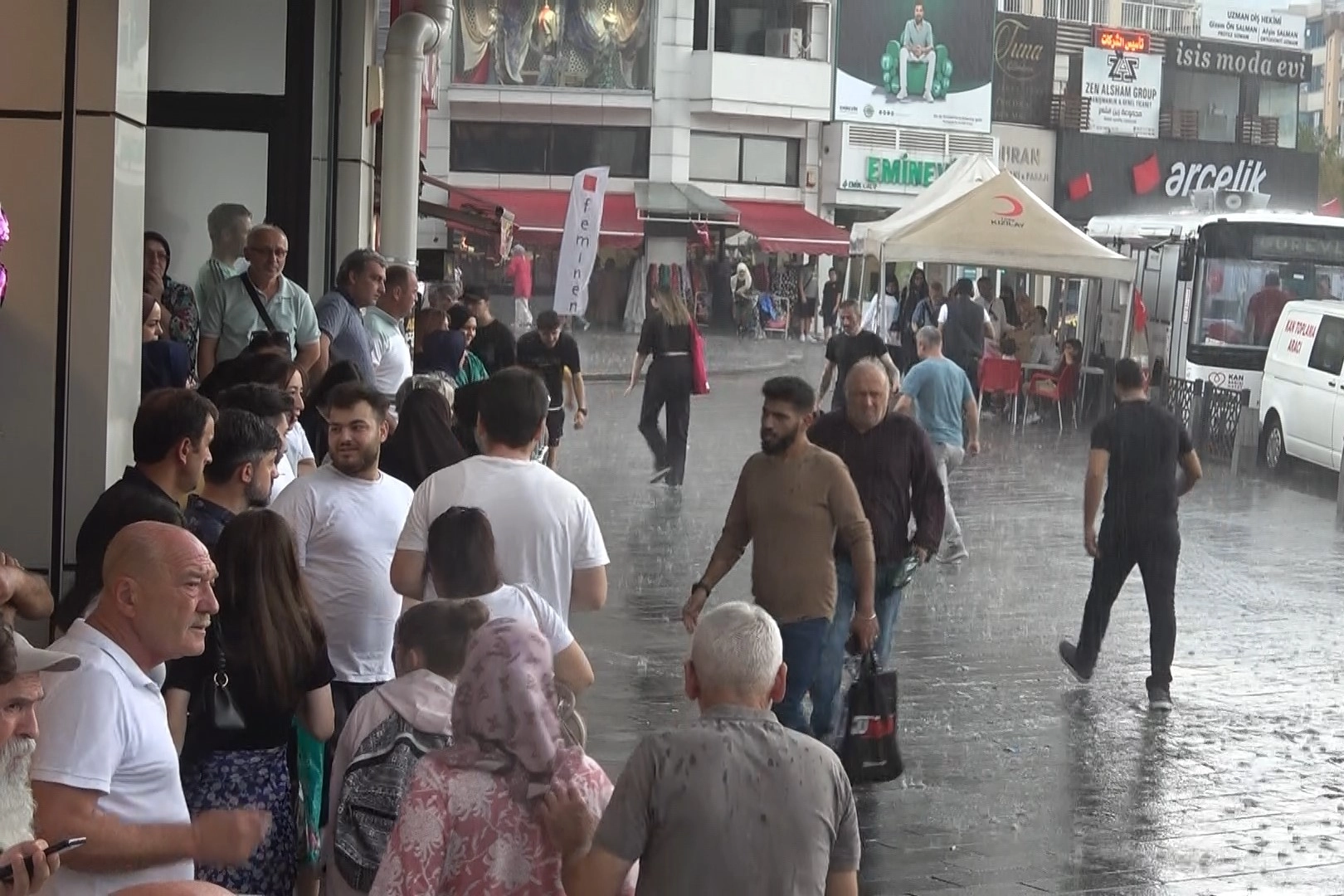 Bursa’da bir anda etkisini gösteren yağmur, hayatı olumsuz etkiledi. Gezmek için dışarıda olan vatandaşlardan kimi tente altına sığındı, kimi ise metro duraklarından çıkamadı. Yağmuru aldırış etmeden yürüyenler ise dikkat çekti.