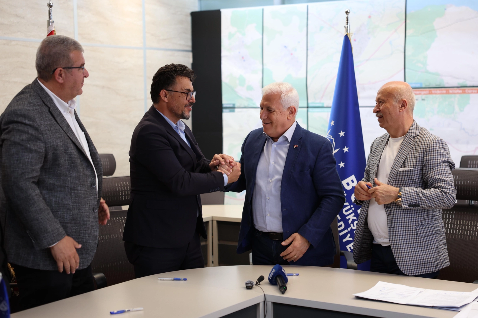 Konuşmaların ardından Başkan Mustafa Bozbey, BURULAŞ Genel Müdürü Fahrettin Beşli, Demiryol-İş Sendikası Adapazarı Şube Sekreteri Hilmi Gültekin, Sodem-Sen Genel Sekreteri Cahit Korkmaz, Sodem-Sen hukuk Koordinatörü Prof. Dr. Süleyman Başterzi, Adapazarı Şube Mali Sekreteri Özkan Çakıroğlu, Şirket İnsan Kaynakları Müdürü Elif Şenol, Sodem-Sen TİS uzmanları Pamir Başer ve Ahmet Yavuz Şentürk, iş yeri temsilcileri Ferit Akkoyun, Ayhan Ceylan ve Murat Çakır arasında toplu iş sözleşmesi imzalandı.