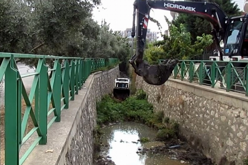 Mudanya Halitpaşa Mahallesi’nde sel sularının dere yatağından taşması sonucu yaşanan çevre felaketinin bir daha yaşanmaması için BUSKİ tarafından dere içinde temizlik ve ıslah çalışmaları başlatıldı.