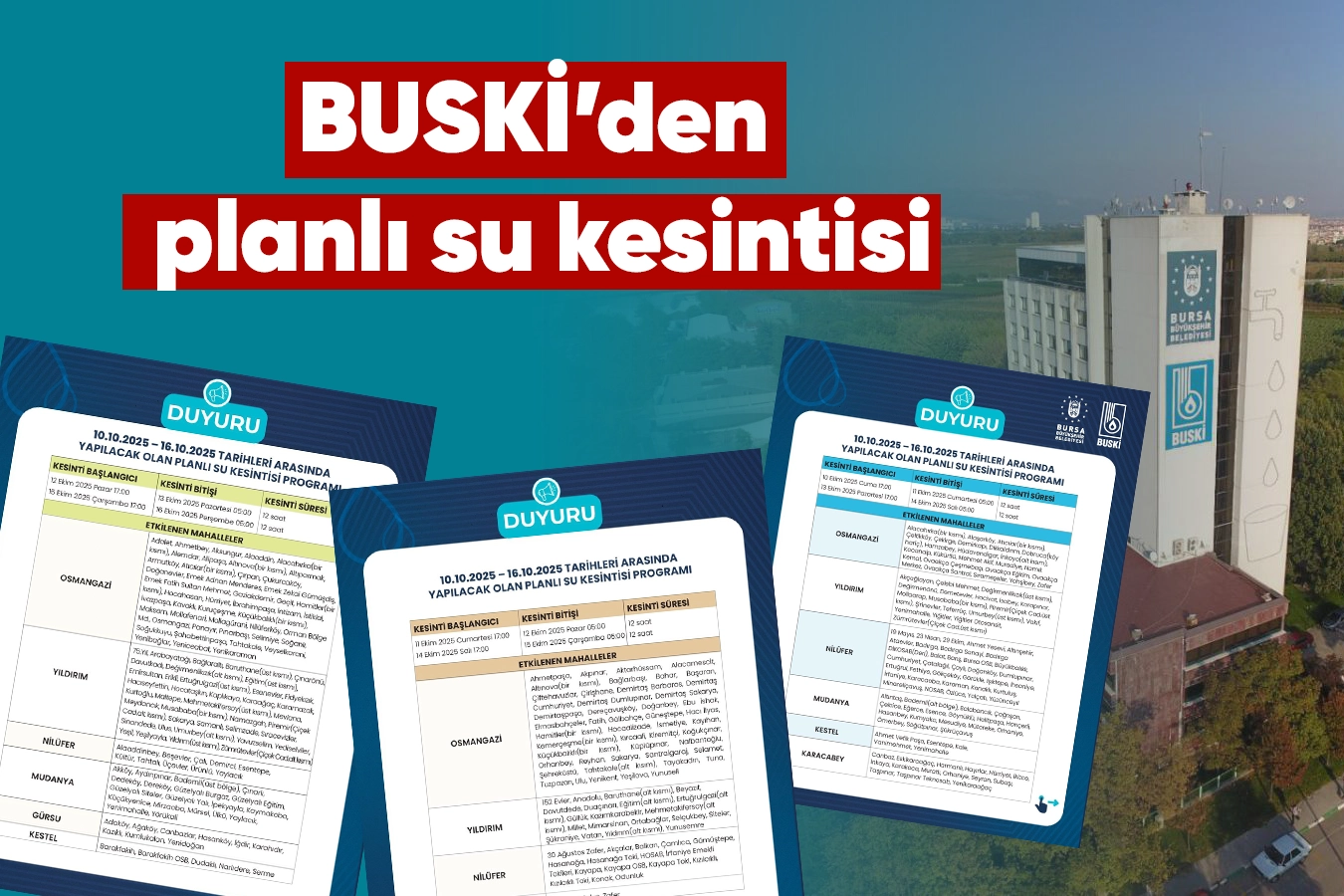 BUSKİ Genel Müdürlüğü, iklim değişikliği neticesinde ortaya çıkan kuraklık sonucu su kaynaklarının azalması ve baraj doluluk oranlarının kritik seviyeye düşmesi sebebiyle 10 Ekim-16 Ekim tarihleri arasındaki yapacağı su kesintilerini duyurdu. Söz konusu planlı su kesintileri, günlük 12 saati geçmemek kaydıyla, merkez ilçelere bağlı mahallelerde dönüşümlü olarak uygulanacaktır. Yapılması planlanan su kesintileri ile günlük 100 bin metreküp su tasarrufu yapılması hedeflenmektedir. Planlı su kesintilerinden Uludağ Üniversitesi, Şehir Hastanesi ve Devlet Hastaneleri etkilenmeyecektir.