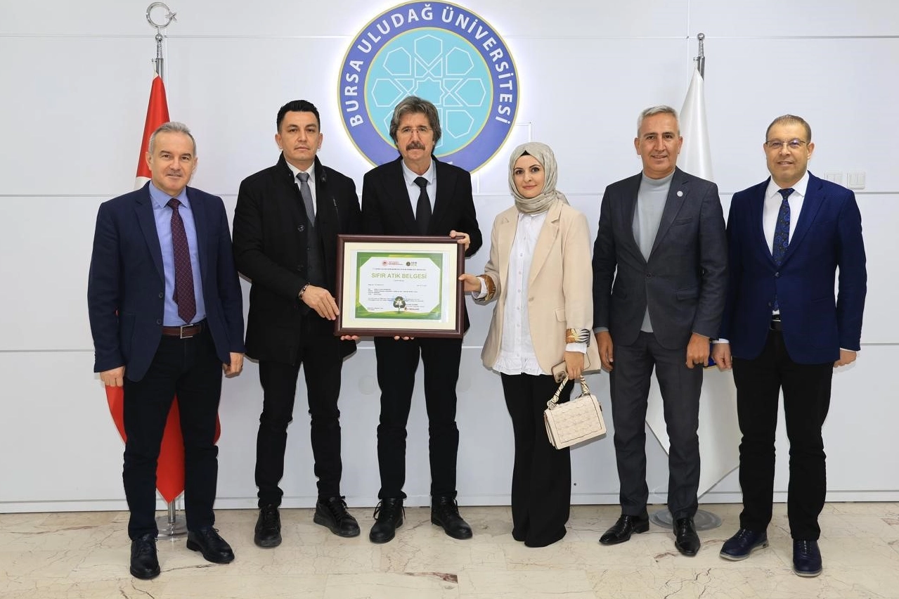 Bursa Uludağ Üniversitesi (BUÜ), "Sıfır Atık" vizyonu doğrultusunda çevre dostu çalışmalarını tescillemeye devam ediyor. Çevre, Şehircilik ve İklim Değişikliği İl Müdürlüğü tarafından yapılan değerlendirmeler sonucunda; üniversitenin 20 Ekim 2025 tarihinde süresi dolan "Sıfır Atık Belgesi", proje gerekliliklerinin başarıyla yerine getirilmesiyle 20 Ekim 2030 tarihine kadar yenilendi. Yenilenen belge; BUÜ Atık Yönetim Merkezi tarafından BUÜ Rektörü Prof. Dr. Ferudun Yılmaz, Rektör Yardımcısı Prof. Dr. Cafer Çiftçi ve Genel Sekreter Mehmet Aydemir’e takdim edildi. Yapılan görüşmede, doğal kaynakların verimli kullanımı ve atık geri kazanımı konularında yürütülen projeler hakkında bilgi verildi. Rektör Prof. Dr. Ferudun Yılmaz, süreci başarıyla yürüten Atık Yönetim Merkezi’ne emeklerinden dolayı teşekkür etti. Ziyarette konuşan Rektör Yılmaz; sürdürülebilir bir kampüs için akademik, idari personel ve öğrencilerin desteğiyle çalışmaların hız kesmeden devam edeceğini vurguladı. Bir sonraki aşamada "Gümüş Belge" alınması için Rektörlük olarak her türlü desteği vereceklerinin altını çizen Yılmaz, bu süreçteki iş birlikleri için Bursa Çevre, Şehircilik ve İklim Değişikliği İl Müdürlüğü’ne ve emeği geçen tüm paydaşlara teşekkürlerini iletti.