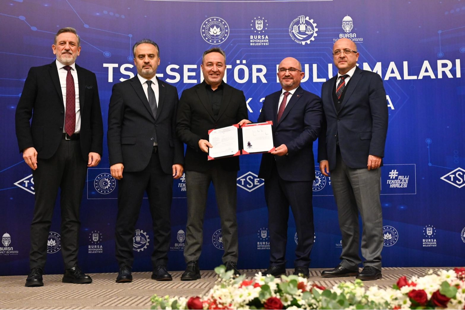 Türkiye'de Akıllı Şehircilik ve İnovasyon Dairesi Başkanlığı'nı kurarak bu alanda önemli bir farkındalık oluşturan Bursa Büyükşehir Belediyesi, teknolojinin sunduğu fırsatları en etkili şekilde kullanarak Bursa’yı daha yaşanabilir ve sürdürülebilir bir hale getirme hedefine emin adımlarla ilerliyor. Altyapıdan üst yapıya kadar her alanda projeler geliştirerek Bursa’yı geleceğe taşırken, kaynak tüketimini azaltıp, verimliliği artıran Büyükşehir Belediyesi, daha önce Kalite Yönetim Sistemi, Çevre Yönetim Sistemi, İş Sağlığı ve Güvenliği Yönetim Sistemi, Enerji Yönetim Sistemi, Müşteri Memnuniyeti Yönetim Sistemi ve Bilgi Güvenliği Yönetim Sistemi belgeleriyle bu alandaki hizmetleri standart hale getirmişti. Kaliteden ödün vermeyen çalışmalara hız kesmeden devam eden Büyükşehir Belediyesi, şimdi de TS EN ISO 56002 İnovasyon Yönetim Sistemi Belgesi’ni almaya hak kazandı. Türkiye’de bu belgeyi almaya hak kazanan ilk belediye olan Büyükşehir Belediyesi, bu belge ile inovasyon faaliyetlerinin daha etkili şekilde planlaması, uygulaması, izlemesi ve sürekli olarak geliştirmesine imkan sağlayacak. Bursa Büyükşehir Belediye Başkanı Alinur Aktaş, İnovasyon Yönetim Sistemi Belgesi’ni, Bursa Ticaret ve Sanayi Odası’nın ev sahipliğinde düzenlenen TSE Sektör Buluşmaları Toplantısı’nda TSE Yönetim Kurulu Başkanı Mahmut Sami Şahin’in elinden aldı.