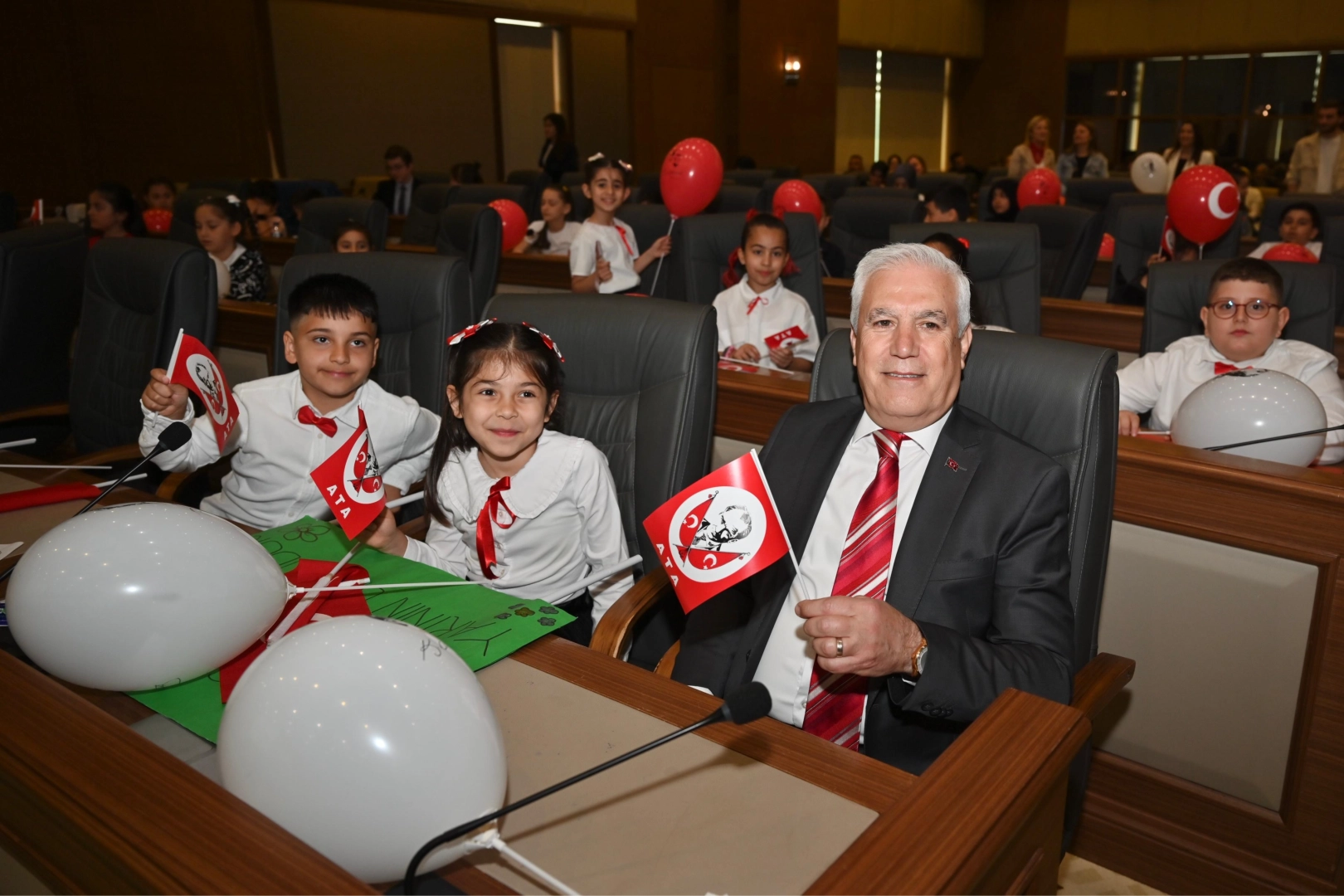 23 Nisan Ulusal Egemenlik ve Çocuk Bayramı ile TBMM’nin açılışının yıl dönümü kutlamaları kapsamında ‘Bursa Büyükşehir Belediye Meclisi Çocuk Oturumu’ Başkan Bozbey’in katılımıyla gerçekleşti. Bursa Büyükşehir Belediye Başkanı Mustafa Bozbey’in koltuğuna oturan Bursa Kent Konseyi Çocuk Meclisi Başkanı Yağız Vatansever ve Çocuk Meclisi yürütme kurulu üyesi İnci Bade Yiğit, çocuklar adına oturum başlangıç konuşmasını gerçekleştirdi. Ulusal Egemenlik ve Çocuk Bayramı etkinlikleri kapsamında 10 okuldan 64 öğrencinin katılımıyla 'Umutlu Yarınlar Çalıştayı' düzenlediğini hatırlatan Çocuk Meclisi Başkanı Yağız Vatansever, gün boyunca yapılan etkinlikte geleceğin Bursa'sını konuştuklarını söyledi. Hayal ettikleri ve olmasını istedikleri kente dair görüş ve düşüncelerini dile getiren çocukların çalıştay sonucunda ortaya çıkan öneri ve taleplerini Başkan Mustafa Bozbey ile paylaşan Yağız Vatansever, “Ulu Önder Gazi Mustafa Kemal Atatürk'ün biz çocuklara armağan ettiği 23 Nisan Ulusal Egemenlik ve Çocuk Bayramı'nda, geleceğe dair umutlarımızı ve hayallerimizi paylaşmak için bir aradayız. Yarının güçlü, adil ve mutlu şehirleri; bugünün düşünen, konuşan ve dinlenen çocuklarıyla kurulacak. Bursa'nın çocukları olarak, kentimizin geleceğine dair fikirlerimizi paylaşmak, bizlere verilen bu kıymetli söz hakkını en iyi şekilde kullanmak istiyoruz. Bu anlamlı günde bizleri dinlediğiniz ve sesimize değer verdiğiniz için teşekkür ederiz. Yaşasın 23 Nisan. Yaşasın Ulusal Egemenlik” dedi.