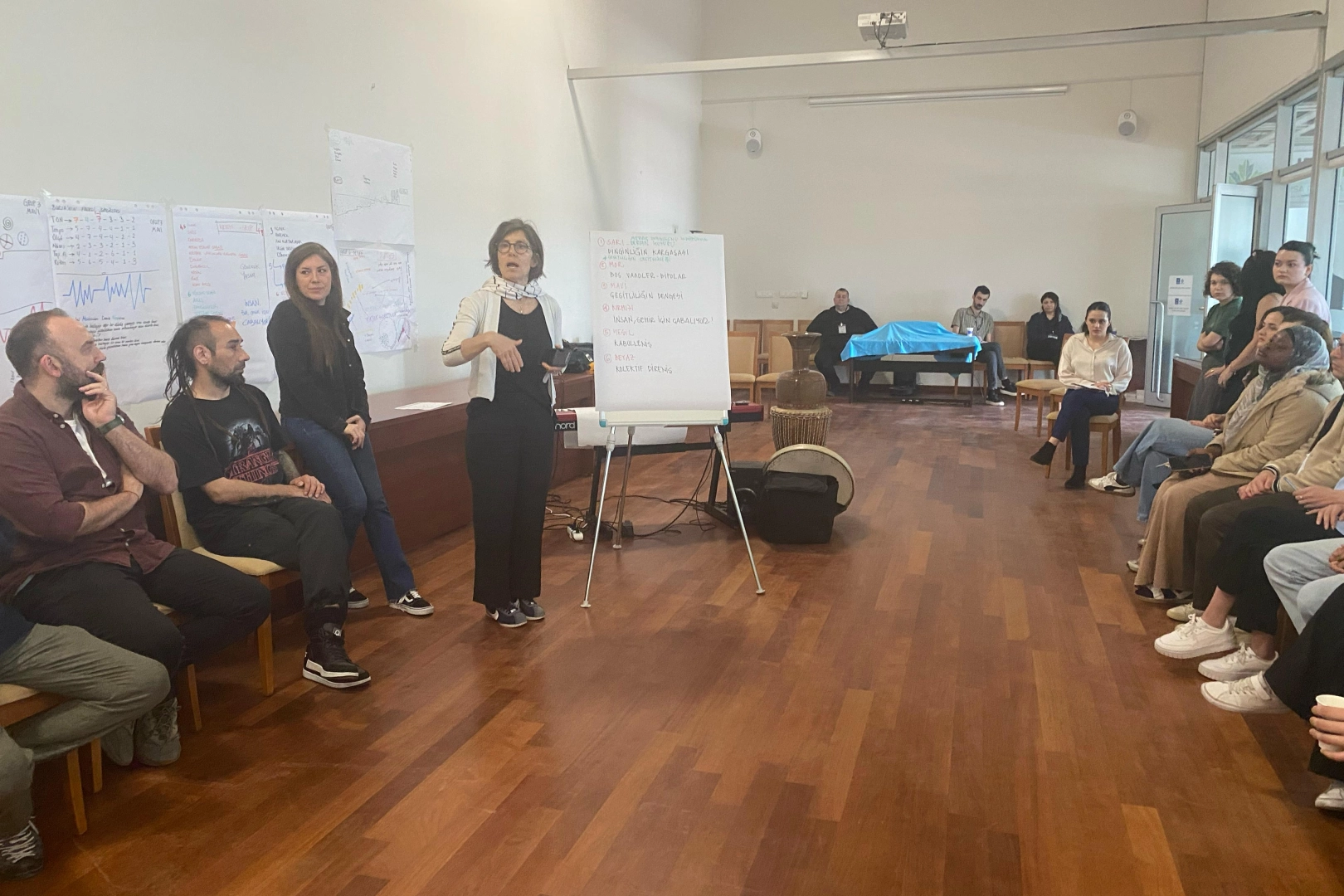 Bursa Planlama Ajansı Ofisi’nde ‘Bursa’nın Tınısı’ temasıyla düzenlenen atölye çalışmalarına, akademik odalar, üniversiteler, danışman hocalar, BUMİAD temsilcileri ve gençlerin katıldığını belirten İmar ve Şehircilik Dairesi Başkanı Nazlı Yazgan, “Katılımcılar, atölye çalışmaları öncesinde kentin farklı bölgelerinde yürüyüş yaptı. Duygu ve düşüncelerini renkler ve objelerle anlattılar. Ritim ve müziğin uyumuna odaklanan atölye çalışmalarıyla, planlama sürecine kentin ruhunun ve kolektif hafızasının da dahil edilmesini planlıyoruz. Üç hafta sürecek olan atölye çalışmalarının sonunda ortaya çıkacak olan eserler, kentin farklı meydanlarında sergilenerek halkla buluşturulacak” dedi.