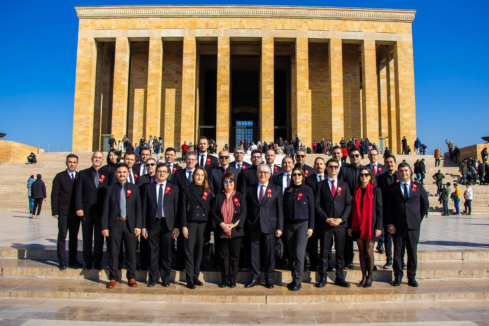 Tören, mozoleye çelenk konulmasıyla başladı. Ardından, Gazi Mustafa Kemal Atatürk ve silah arkadaşları için saygı duruşunda bulunuldu. Bu anlamlı anların ardından, heyet Anıtkabir merdivenlerinde hatıra fotoğrafı çektirdi.