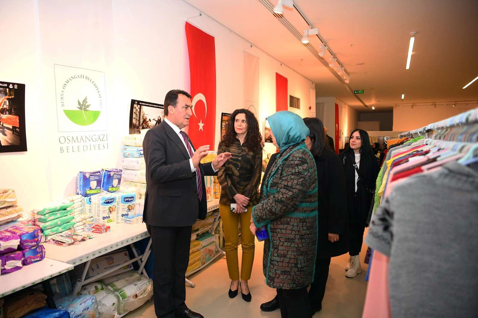 Osmangazi Belediye Başkanı Mustafa Dündar, AK Parti Bursa Milletvekili Emine Yavuz Gözgeç ve AK Parti Bursa İl Kadın Kolları Başkanı Emel Gözükara Durmaz ile birlikte Sevgi Mağazası’nı gezdi. Osmangazi Belediyesi olarak depremin yaşandığı ilk günden depremzede vatandaşların yaralarını bir nebze de olsa sarabilmek için tüm imkanları seferber ettiklerini ifade eden Başkan Dündar, “Gaziantep’in İslahiye ilçesinde inşa ettiğimiz konteyner kent ile yüzlerce depremzedenin barınma ihtiyacını karşılayacağız. Yapım çalışmaları devam eden konteyner kentte, konutların yanı sıra okul, millet kıraathanesi, mescit ve çocuk oyun alanı da yer alacak. Deprem bölgesindeki çalışmalarımız devam ederken depremin ardından şehrini terk ederek Bursa’ya gelen depremzede vatandaşlarımızın kıyafet ihtiyacını karşılamak adına kurduğumuz Sevgi Mağazası’ndan bugüne kadar 3 bin 488 depremzede vatandaşımız faydalandı. Depremzede vatandaşlarımıza en ufak bir destek bile sunabiliyorsak ne mutlu bize” dedi.