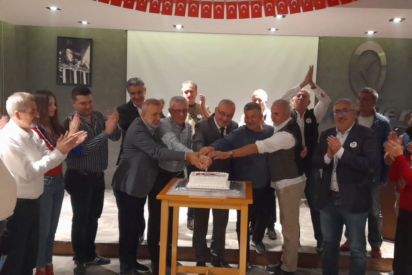 Bu anlamlı anma gecesinde aynı zamanda Gazioğlu dostları, Cumhuriyet’in 100’üncü Yılını özel bir pasta ile kutlamayı ihmal etmediler.