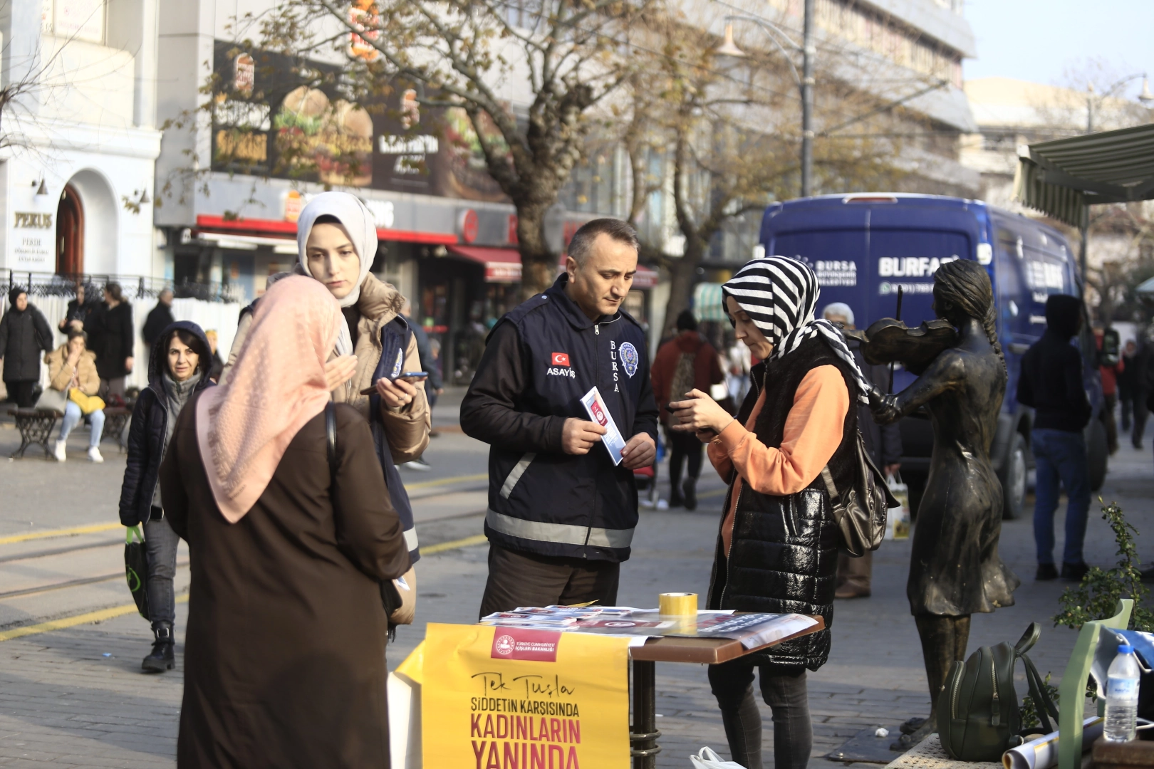 Stantlarda eğitim veren polis ekipleri cadde cadde sokak sokak dolaşarak vatandaşların telefonuna KADES uygulaması indirip suç oranlarının azalmasını hedefliyor. İçişleri Bakanlığı'nın kadına şiddetin önüne geçebilmek amacıyla geliştirdiği Kadına Destek Uygulaması (KADES) ile suç oranları ciddi anlamda azalırken, Bursa İl Emniyet Müdürlüğüne bağlı polis ekipleri kent merkezi ve ilçelerde yaklaşık bin stant kurdu. Cadde ve sokaklarda vatandaşlara bilgi veren ekipler, kadınlara kendilerini korumaları ve acil durumlarda KADES'i nasıl kullanacağı hakkında bilgilendirdi. Yapılan uygulamalarla kadına yönelik şiddetin önüne geçilmesi hedeflenirken, polis ekiplerinden bilgi alan vatandaşlar ise memnuniyetlerini dile getirdi.