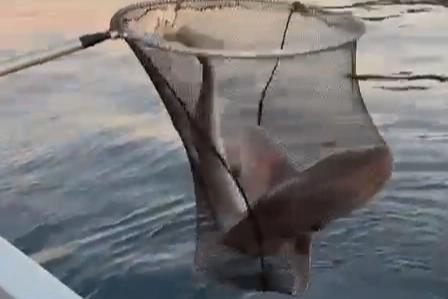 O anlar cep telefonu kamerasıyla saniye saniye kaydedilirken, görüntüler sosyal medyada kısa sürede ilgi gördü. Yaklaşık 140 santimetre uzunluğundaki köpek balığının Marmara Denizi'nde nadir rastlanan bir tür olduğu belirtildi.