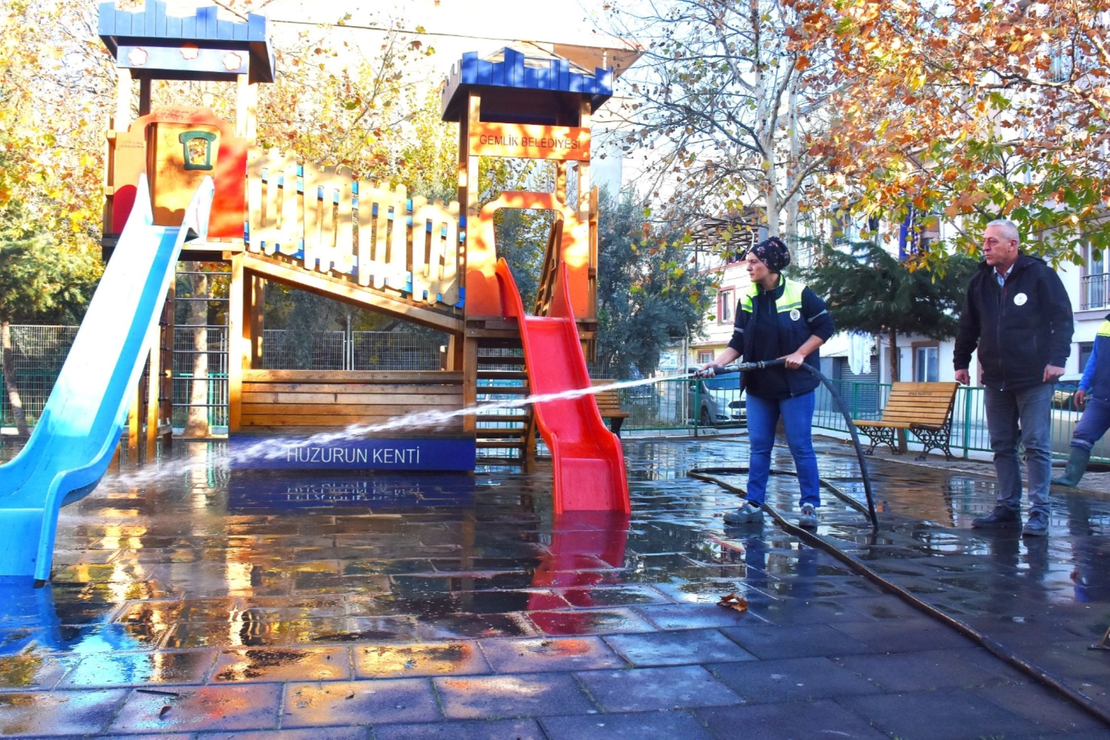 Bu kapsamda, ekipler son olarak Hamidiye Mahallesi Çınar İlköğretim Okulu’nun yanında bulunan parkla birlikte yaklaşık 40 parkta temizlik çalışmalarını tamamladı. Özellikle kadın personelin katkısıyla gerçekleştirilen yıkama ve temizlik işlemleri büyük bir özenle tamamlandı. Temizlik İşleri Müdürü Kadir Özkan, WhatsApp İhbar Hattı’na gelen şikâyetleri anında değerlendirerek gerekli çalışmaları yaptıklarına dikkat çekti. İlçe sınırlarında bulunan tüm parkların genel temizliğine ayrı bir önem verdiklerini belirten Gemlik Belediye Başkanı Şükrü Deviren, “Ekiplerimiz, onlarca çocuk ve yetişkinin hoşça vakit geçirmek amacıyla geldiği parklarımızın temizliğini periyodik olarak yapıyor” dedi. Daha temiz ve yaşanabilir bir Gemlik için ilçedeki sokaklar, kaldırımlar, parklar, otobüs durakları ve çöp konteynerlerinin düzenli olarak temizlenip yıkandığını vurgulayan Başkan Deviren, “Gemlik’te sağlık konusunda asla taviz vermiyoruz. Vatandaşlarımızın ve özellikle çocuklarımızın daha sağlıklı koşullarda eğlenmeleri ve keyifli vakit geçirmeleri için çalışmalarımızı sürdürüyoruz” diye konuştu.