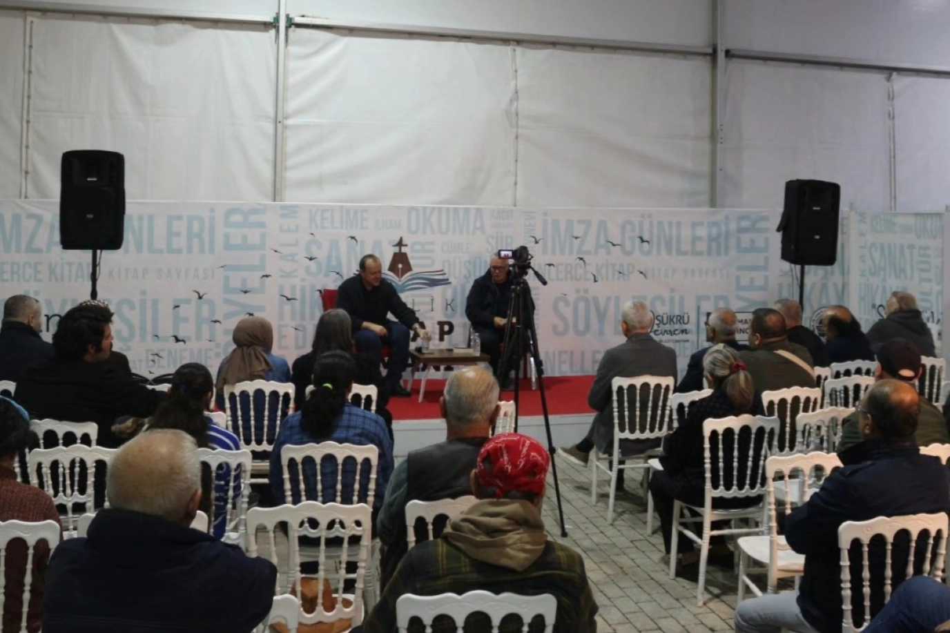 Bursa'da Gemlik Kitap Limanı’nda düzenlenen “Gemlik’ten Dünyaya Gazeteci Gözüyle Bakmak” başlıklı söyleşide, Gazeteci Mustafa Emre Özgen ve Gemlik’in köklü isimlerinden Gazeteci Necati Kartal bir araya geldi.