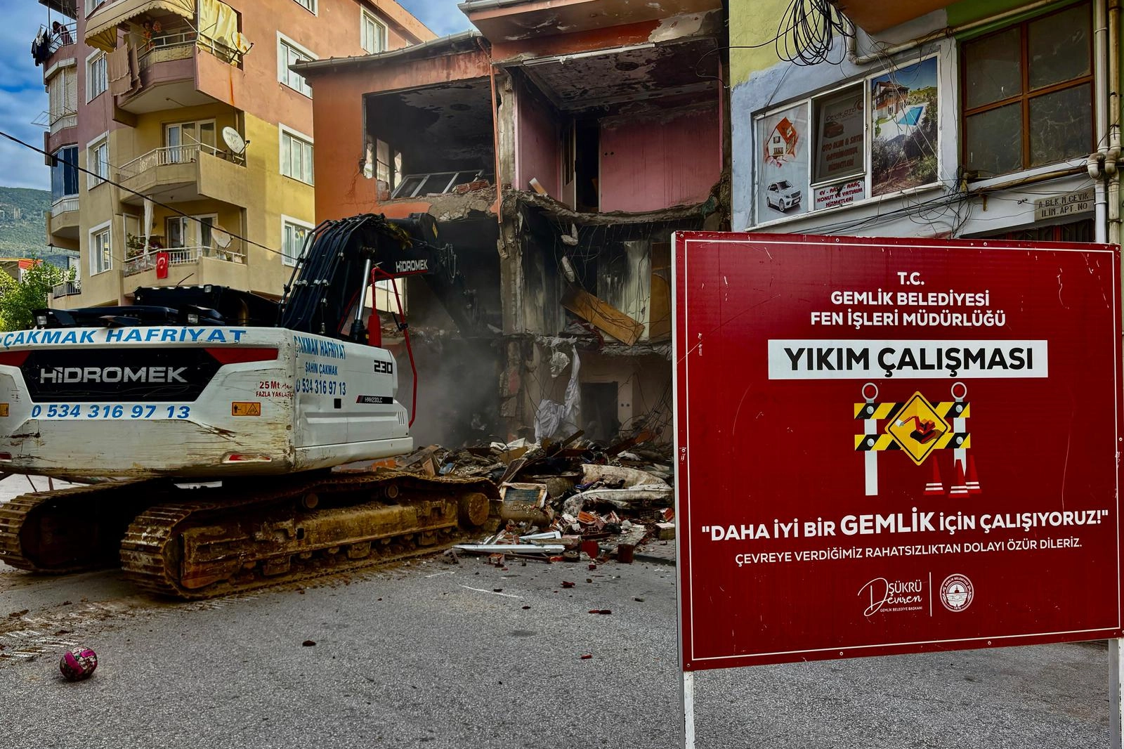 Gemlik Belediyesi, kent genelinde kullanım ömrünü tamamlamış ve güvenlik riski oluşturan binalarla mücadelesini sürdürüyor.
