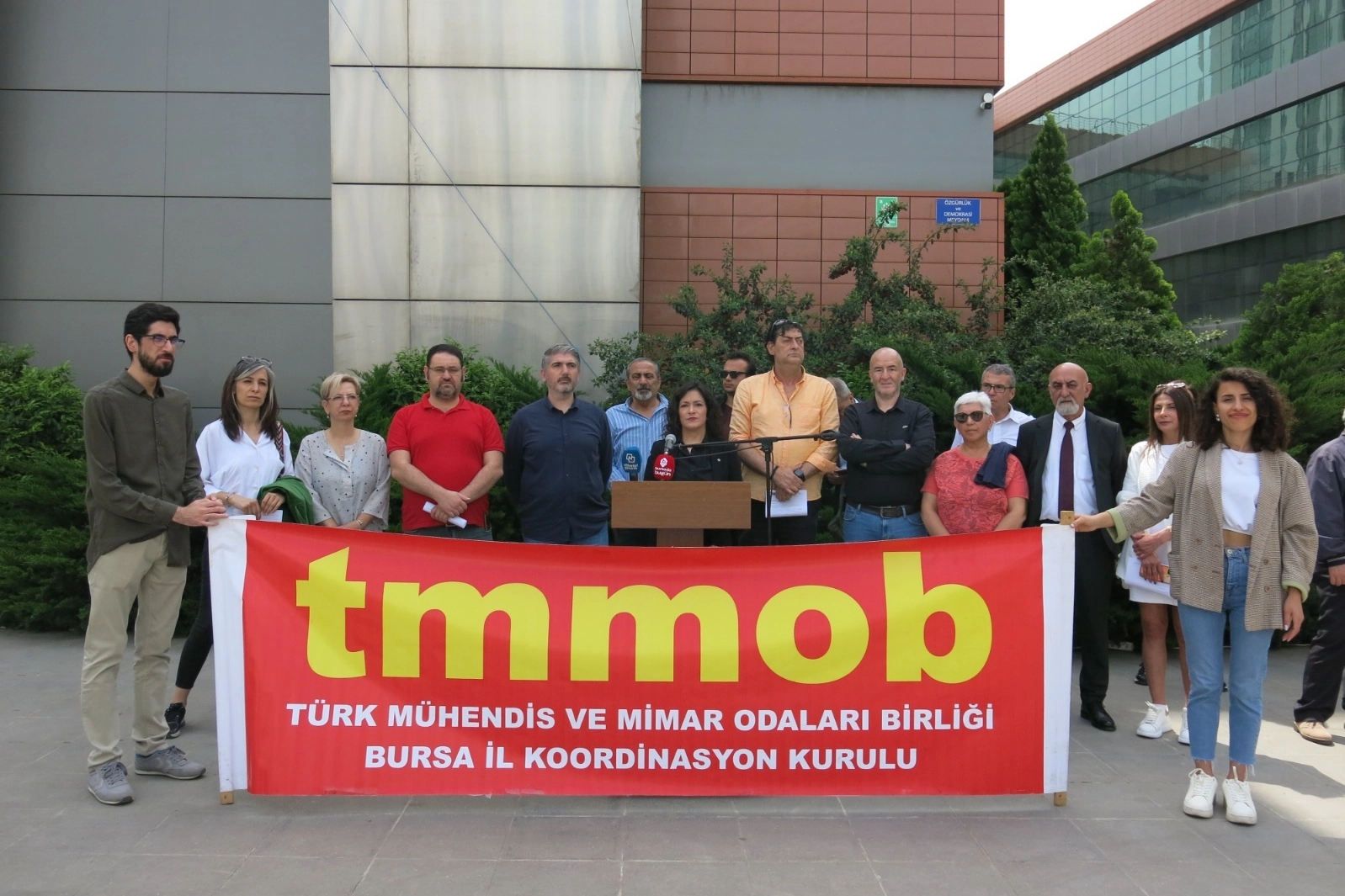 TMMOB Bursa İKK Sekreteri Şirin Rodoplu Şimşek’in okuduğu açıklama şöyle: