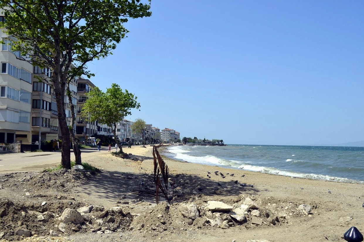 İnşaat sebebiyle biriken molozlar esnafı çileden çıkarırken, beton duvardan çıkan demirler ise gezmeye gelen vatandaşlar için tehlike saçıyor. Güzelyalı Mahallesindeki gecmiş dönem büyükşehir yönetimi tarafından başlatılan sahil düzenleme çalışmaları sırasında biriken molozlar, sert esen rüzgarlar sonucu sahildeki çay bahçeleri başta olmak üzere diğer esnaf ve mahalle sakinlerini canından bezdirdi.