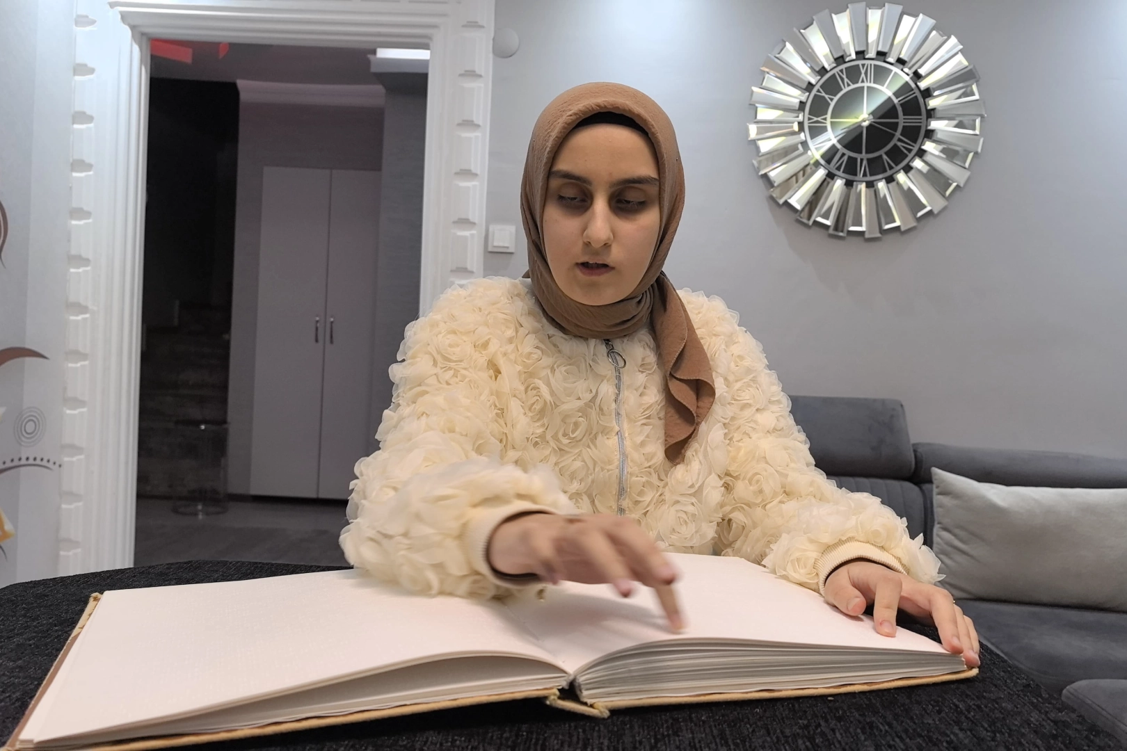 Medine Mevlütoğlu, "Ben küçük yaştan beri Kur'an aşkıyla büyütüldüm. Yani her zaman bu aşılandı bana. 8 yaşıma kadarki süreçte de her zaman babaanne, anneanne vesilesiyle Diyanet İşleri Başkanlığımız bünyesindeki birçok kursta eğitim alma fırsatı buldum fakat kabartma Kur'an-ı Kerim hani o zamanlar hem materyal yoktu, imkan yoktu. Öğrenememiştim. 8 yaşındayken hocalarım sağ olsunlar beni keşfettiler, sen öğrenebilirsin dediler. Bahriye hocamla iletişime geçtiler. Daha sonradan aile olarak iletişime geçtik, tanıştık ve kabartma Kur'an öğrenme sürecimiz başladı. Kısa bir süreçte Elif Ba cüzünü bitirdik ve Kur'an-ı Kerim öğrenmeye başladık, kabartma Kur'anla. Hocam sağ olsun çok yardımcı olmuştu o süreçte bana. Ve fark ettim ki Kur'an-ı Kerim benim hayatımı şekillendiriyor, ben onu hayat rehberi edinmeliyim ve daha fazla bu Kur'an-ı Kerim ile hemhal olmalıyım dedim fakat o zamanlarda maalesef böyle bir şey mümkün olmadı. Benim ortaokul sebebiyle Ankara'ya gitmem gerekti. Ankara'daki eğitimimde ne yazık ki ara vermek durumunda kaldım biraz ama sayın hocamla bağlarımızı hiçbir zaman koparmadık elhamdülillah. Ankara'dan döndükten sonra da Kur'an-ı Kerim eğitimime ara vermeden devam etmek istedim. Hem onu ezberlemek hem de anlamını içime işlemek istedim. Daha sonradan Bahriye Hocamın yanında Orhaniye Kuran Kursu'nda yine Diyanet İşleri Başkanlığımıza bağlı, hafızlık hazırlık eğitimi aldım. 30. Cüz, Yasin, Mülk gibi sureleri ezberlemek nasip oldu. Daha sonradan mart 2023 tarihinde İnegöl Merkez Hafızlık Kız Kuran Kursu'nda Hacer hocamın öğrencisi olarak hafızlığa başladım. Normalde 3 yıla kadar uzayan hafızlık sürecini 1.5 yıl gibi bir süreyle tamamlamak nasip oldu çok şükür. Hafızlık belgemin ardından öncelikle lise eğitimimi tamamlamak ve güzel bir İlahiyat fakültesinde eğitim almak istiyorum. Zira hedefim bu yönde. Daha çok Kur'an-ı Kerim ile hemhal olmak ve insanlarında hemhal olmasını sağlamak istiyorum inşallah. Daha sonra fıkıh ya da tefsir gibi alanlarda kendimi daha çok geliştirmek istiyorum. Hem diyanet bünyesinde öğretmenlik, hocalık yapmanın yanı sıra kendimi geliştirip üniversitelerde bir akademisyen bir profesör olarak da görev yapmak hedeflerim arasında aynı zamanda. Kendimi daha çok geliştirip fıkıh ya da tefsir alanında yeni öğrenciler yetiştirmek, insanları bu konuda bilgilendirmek hedeflerim arasında. Daha öncelerde de kendisiyle tanışmış bulunduğumuz, kendisine piyano çalmış bulunduğum sayın Cumhurbaşkanımız Recep Tayyip Erdoğan'ın elinden de temmuzda gireceğim sınavdan inşallah elde edeceğim belgeyi almak istiyorum. Ben hafızlık sürecimde aynı zamanda İngilizce eğitimi de alıyordum. Bir ilerleme kaydetmiştim fakat benim kurum bitti. O zamanlarda belli bir seviyeye gelmiştim, o seviyenin bitişiyle beraber ben akademiden ayrıldım. Fakat cambly programında haftanın 3 günü anadili İngilizce olan eğitmenlerle yine eğitimime devam ediyorum. Aynı zamanda İmam Hatip Lisesi öğrenci olmam sebebiyle de Arapça öğreniyorum. Kendi kendime Fransızca öğrenmemin yanı sıra annem sağ olsun Rusça öğrenmeme de katkı sağlıyor. O yüzden hem dil hem de daha önce de bahsettim Cumhurbaşkanımıza piyanoda çalmıştım. Aynı zamanda piyano eğitimime de devam ediyorum. Bu süreçte de hafızlığımı tamamladım" dedi.