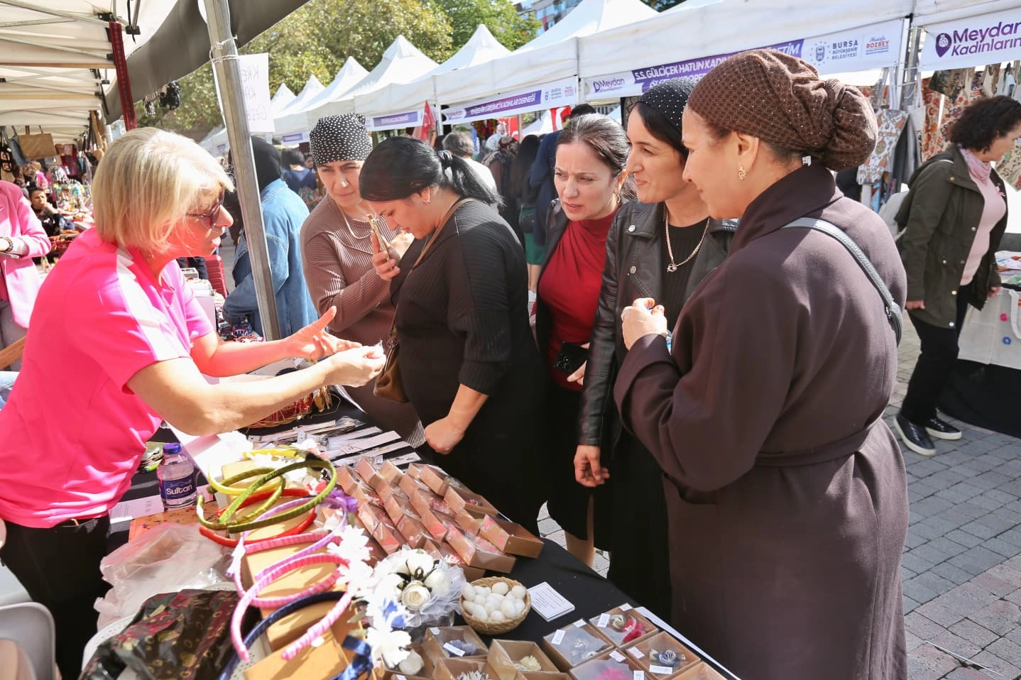 Bu tür etkinliklerin kadınların ekonomiye katılımı ve çalışmalarının tanıtımı açısından büyük önem taşıdığını vurgulayan dernek ve kooperatif temsilcileri, kadınlara her alanda ve her zaman destek veren Büyükşehir Belediye Başkanı Mustafa Bozbey’e teşekkür etti. Bursa Kent Konseyi Sağlık Çalışma Grubu da Büyükşehir Belediyesi’nin 1-31 Ekim Meme Kanseri Farkındalık Ayı etkinlikleri kapsamında alanda yerini aldı. Tıp fakültesi öğrencilerinden oluşan genç sağlıkçılar, bilgilendirme yaparak meme kanserine dikkat çekmek amacıyla pembe renkli kurdele dağıttı. Meydan Kadınların Projesi, kentin farklı noktalarında Bursalılarla buluşmaya devam edecek.
