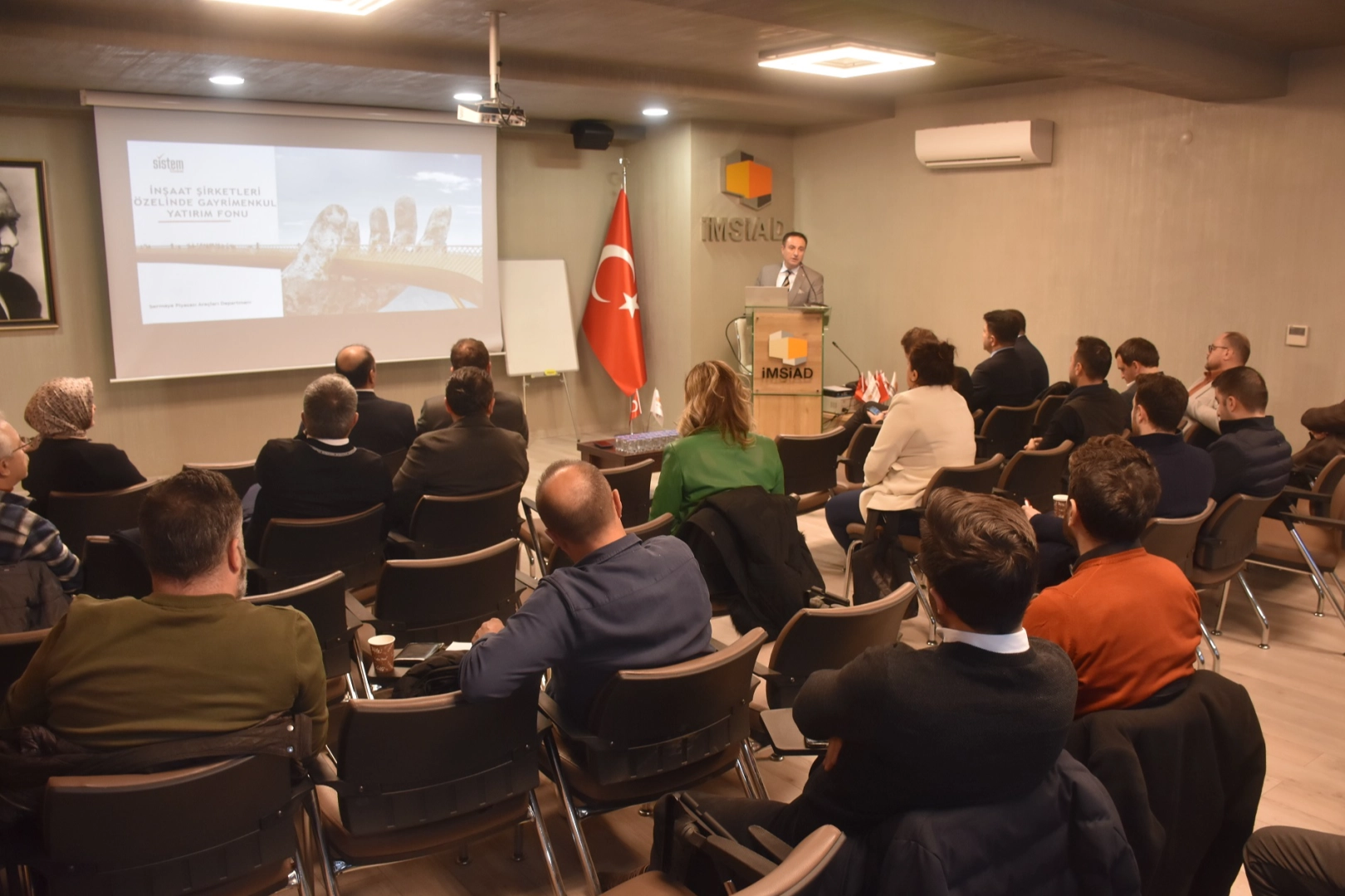 Programda İMSİAD üyelerine gayrimenkul yatırım fonları imkanlarını anlatan Sistem Global Danışmanlık Kurucu Ortağı Av. Cengiz Aydemir de sunumunda, nakde ulaşım zorluğuna karşı üretim ve ticaretin sürdürülebilmesi için kurulacak fon şirketlerinin iyi bir alternatif olacağını söyledi.