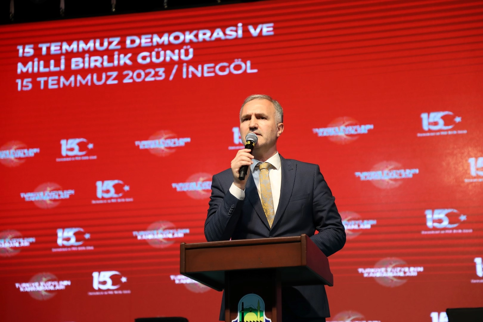 Hain darbe kalkışmanın 7’nci yıl dönümü kapsamında 15 Temmuz 2023 Cumartesi günü düzenlenen anma etkinliklerinde de sahnede yine milli iradenin kadim nöbetçileri Türk Halkı vardı. Yurdun dört bir yanında olduğu gibi İnegöl’de de tüm halk, 15 Temmuz Demokrasi ve Milli Birlik Gününü meydanlarda demokrasi nöbeti tutarak geçirdi. Tıpkı darbe kalkışmasının yaşandığı gece gibi binlerce vatansever sokaklara indi, yapılan kalleşliği unutmadığını ve her daim milli iradeye sahip çıkmak için hazır beklediklerini gösterdi.