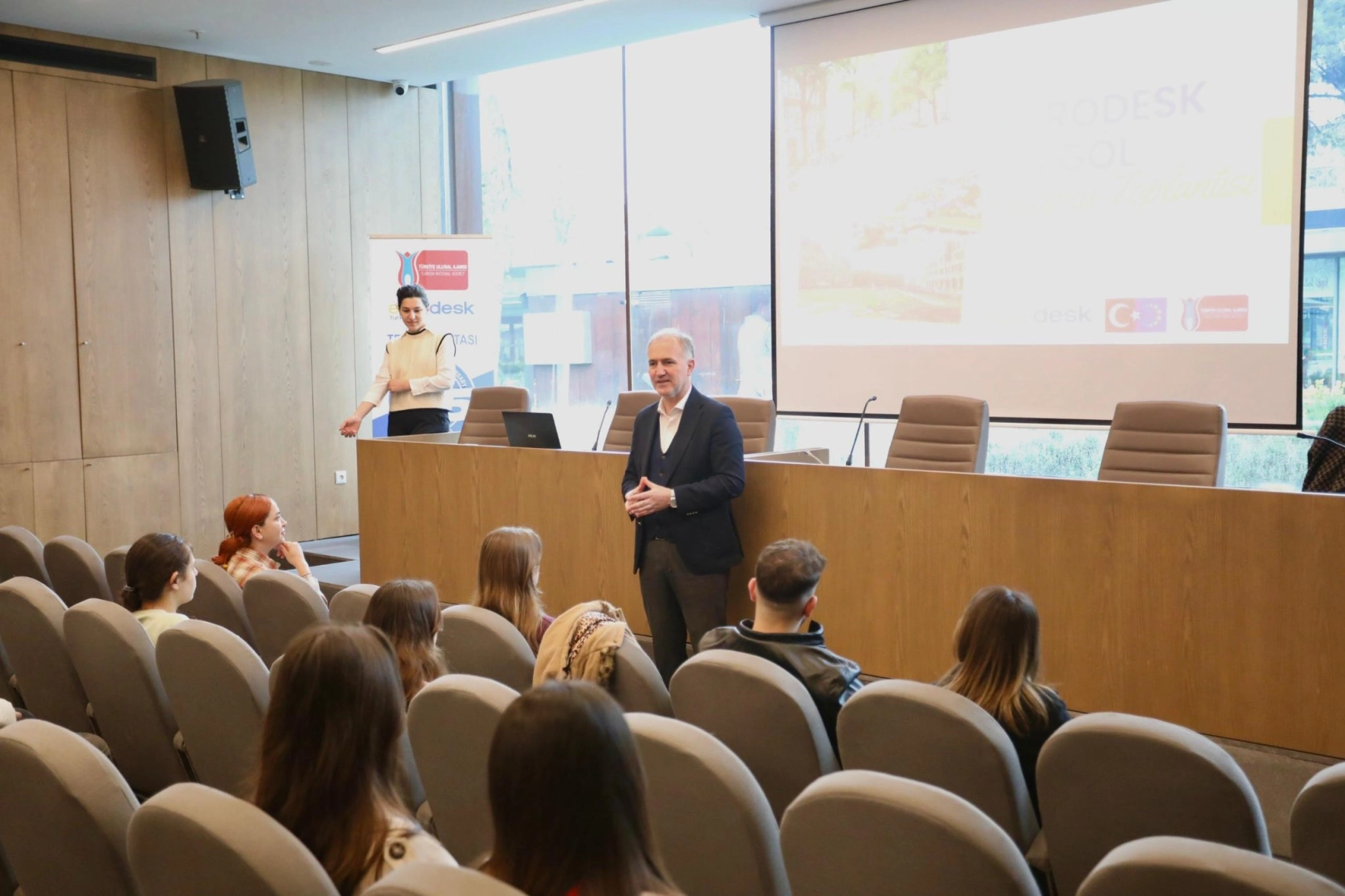 Konuşma sonrası etkinlik katılımcıların kaynaşmasını sağlamak amacıyla tanışma ve buz kırıcı faaliyetler, ardından Eurodesk’in faaliyetleri hakkında bilgilendirmelerin yapılması, DiscoverEU programının kapsamının detaylı şekilde anlatılması ve programın sunduğu fırsatlar, başvuru şartları ile süreci örnek başvuru üzerinden gençlere aktarma şeklinde devam etti. Organizasyonun en dikkat çeken bölümlerinden biri ise birebir başvuru desteği oldu. Başvuru yapmak isteyen katılımcı gençler, uzmanlar eşliğinde başvurularını tamamlayarak merak ettikleri tüm sorulara yanıt bulma imkanı elde etti.