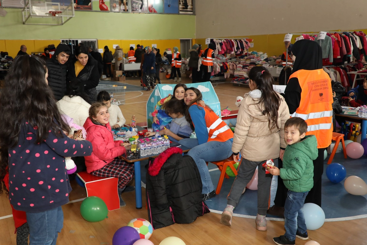Alanda aynı zamanda çocuklar için de çeşitli etkinlikler hazırlandı. Aileleri ihtiyaçlarını karşılarken depremzede çocukların da felaket psikolojisinden bir an evvel çıkabilmeleri için İnegöl Belediyesi Şehir Tiyatrosu ekibi salonda oyun ve etkinlik alanları oluşturdu. Burada çocuklar da keyifli anlar yaşayarak depremin etkisinden kurtulmaya çalışıyor.