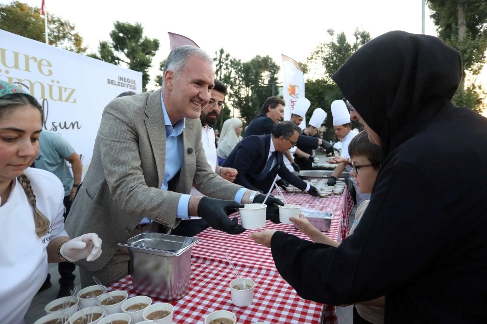 Alanda vatandaşlarla bir araya gelen İnegöl Belediye Başkanı Alper Taban, aşurenin anlamına ve Muharrem Ayı'nın maneviyatına vurgu yaptı. Başkan Alper Taban konuşmasında, “Şehadetlerinin 1386. yılında Kerbela da şehit düşen Hz. Hüseyin Efendimizi ve tüm Kerbela şehitlerini ve vatanı uğruna kahramanca savaşan tüm şehitlerimizi rahmetle anıyoruz. Aşure Günü birlik, dayanışma ve kardeşlik günüdür. Aşure ise bu birlikteliğin tatlı bir simgesidir. Nasıl ki farklı tatlar bir araya gelerek aşureyi oluşturuyorsa İnegöl’ümüz de 81 vilayetten, Balkanlardan, Kafkaslardan ve dünyanın dört bir yanından gelen vatandaşlarımızla huzur içinde yaşayan örnek bir şehir. Devletimiz, tüm mazlum coğrafyalara el uzatmaya devam ediyor. Filistin ve Gazze’deki kardeşlerimiz için de dua ediyor, barış ve özgürlük diliyoruz.” dedi.