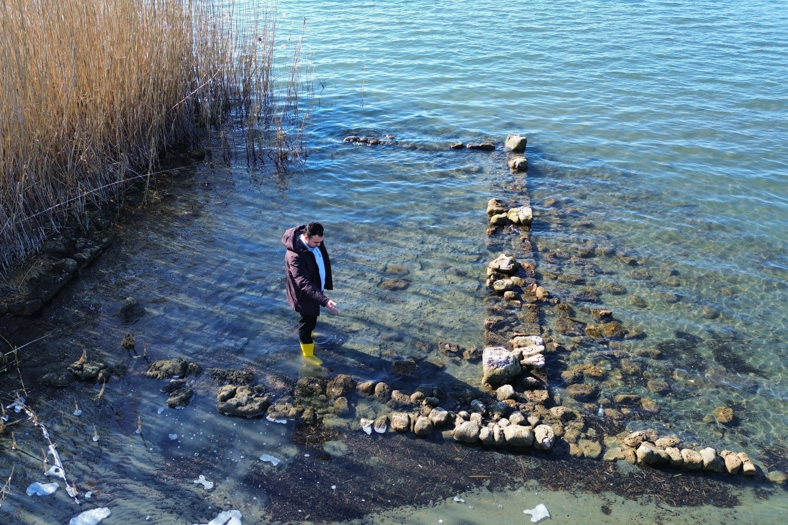 Göl sularının çekilmesiyle tamamen görünür hâle gelen kalıntıların, İznik sahil bandında kumsalın hemen yanında yer aldığı görülürken, yapıyı fark eden ekip heyecan yaşadı.