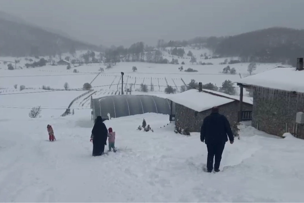 Karda koşup oynayan çocuklar, kızakla kayarak karın tadını çıkardı. İşletme sahibi Murat Turan, "Kar yağışı başladığı andan itibaren müşteri ve tatilci oranımız çok arttı. Şu anda iki hafta karlı görünüyor, bütün evlerimiz dolu durumda" ifadelerini kullandı.