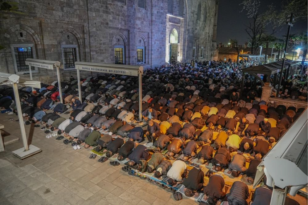 Kadir Gecesi münasebetiyle on binlerce vatandaş Ulu Cami'ye sığmadı. 7'den 70'e binlerce vatandaş cami avlularında ve çevresinde dualarla Kadir Gecesi'ni idrak etti.