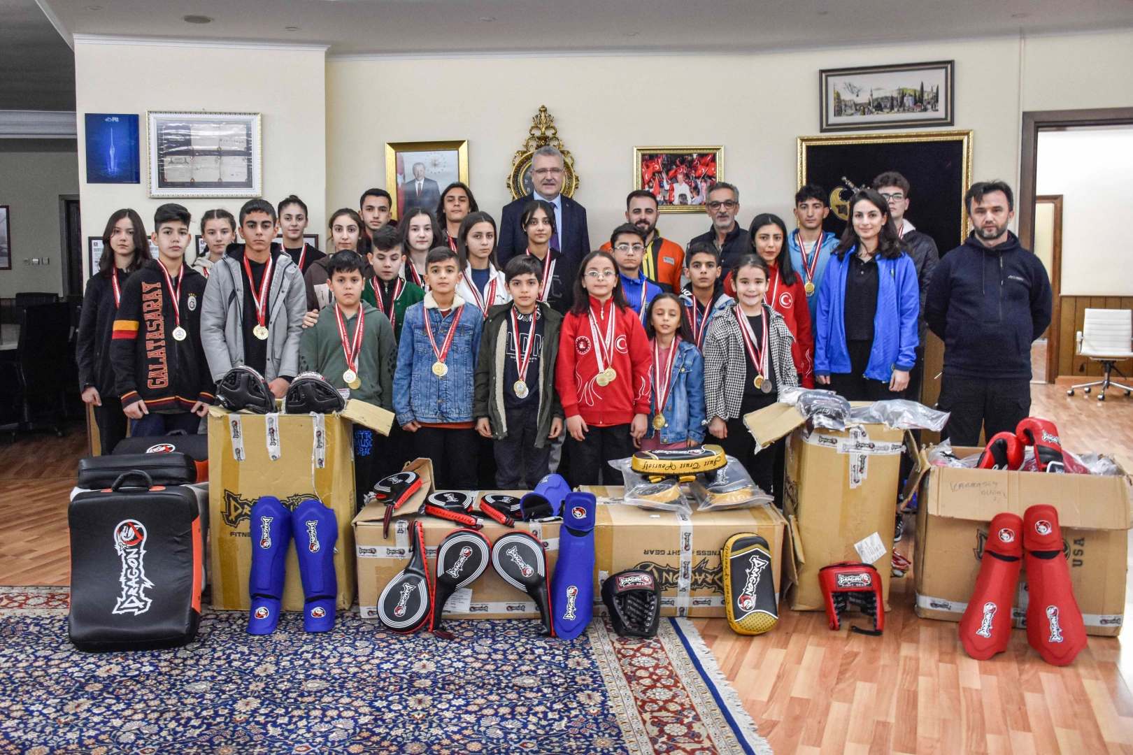 Karacabey Gençlik Spor Kulübü sporcuları Bursa Wushu Şampiyonası’na damga vurarak, dikkatleri üzerlerine çekti. Karacabey Belediyespor çatısı altında şampiyonada yer alan sporcular, toplamda 13 altın, 9 gümüş ve 2 bronz madalya kazandı. Karacabey Gençlik Spor Kulübü sporcuları, Antrenörleri Yılmaz Şahin ve Ömer Gönültaş ile birlikte Bursa Wushu Şampiyonası sonrasında Belediye Başkanı Ali Özkan’ı ziyaret etti. Spora verDİĞİ desteklerden dolayı Başkan Özkan’a teşekkür eden Antrenör Yılmaz Şahin, “Karacabey Gençlik Spor Kulübü olarak, 4-5 ve 18-19 Kasım tarihlerinde düzenlenen Bursa Wushu Şampiyonası’na 25 sporcumuzla katıldık. Bu şampiyonadan 13 tane birincimiz altın madalya, 9 tane ikincimiz gümüş madalya ve 2 tane üçüncümüz ise bronz madalya kazanarak bizleri onurlandırdı. Aynı zamanda kulübümüz, kulüpler bazında Bölge Üçüncülüğü elde etti. Antrenmanlarda zaman zaman malzeme eksikliğimiz oluyordu. Çocuklarımızla birlikte ne kadar zengin malzemeyle antrenman yapma şansı bulursak, yarışmalarda o kadar başarılı oluyor. Yeni malzemelerle birlikte daha verimli antrenmanlar yaparak, çok daha büyük başarılarla Karacabey'i gururlandıracağız” şeklinde konuştu.