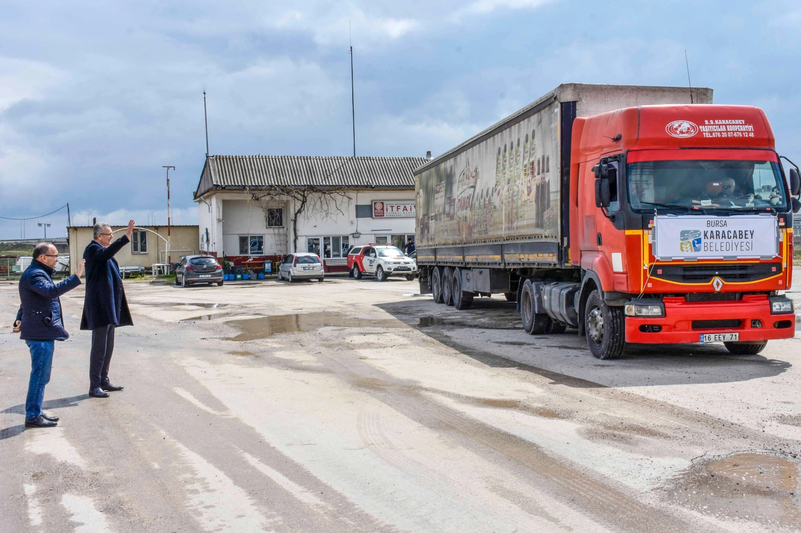 Karacabey Belediyesi, depremin yaşandığı ilk günün sabahından itibaren yoğun bir organizasyon ile bölgeye hızlıca yardım malzemeleri ve teknik personel göndermiş ve bir yandan arama kurtarma faaliyetlerine, bir yandan da depremzedelere çeşitli yardımlar ulaştırmıştı. Belediye Başkanı Ali Özkan, yardım araçları göndermeye devam ettiklerini belirterek, geçtiğimiz gün afet bölgesine erzak ve içme suyu yüklenen 2 tırı daha yola çıkarttıklarını söyledi.