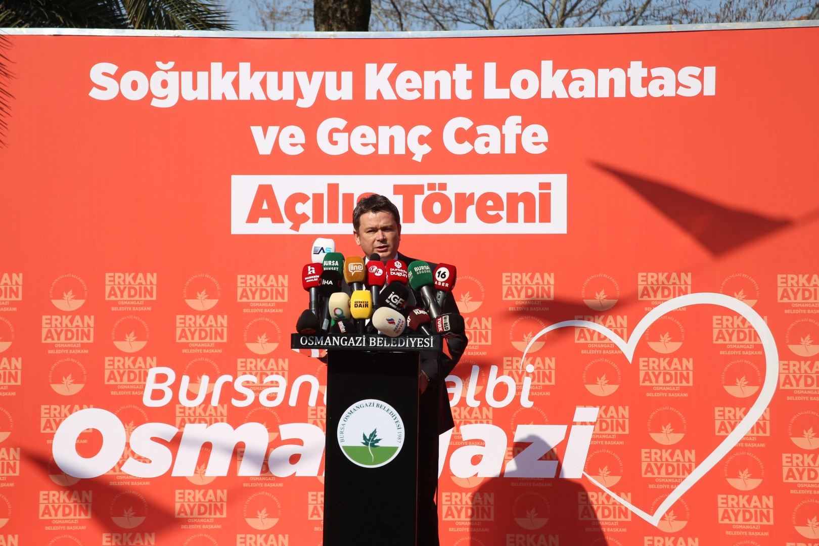Yoğun katılım ile yeni Kent Lokantası ve Genç Kafe'ye kapılarını açtıklarını belirten Osmangazi Belediye Başkanı Erkan Aydın, yerin teminiyle ilgili birçok prosedürle uğraştıklarını belirtti. Aydın, "Gerçekten yerin teminiyle ilgili birtakım prosedürler için bayağı uğraştık. Birkaç kez Ankara'ya gitmek zorunda kaldık. Ama çok şükür, muhtarımız ve heyeti seçimden sonra hayırlı olsun ziyaretine geldiklerinde söz verdiğimiz gibi bugün de açılışını yapıyoruz" diye belirtti.